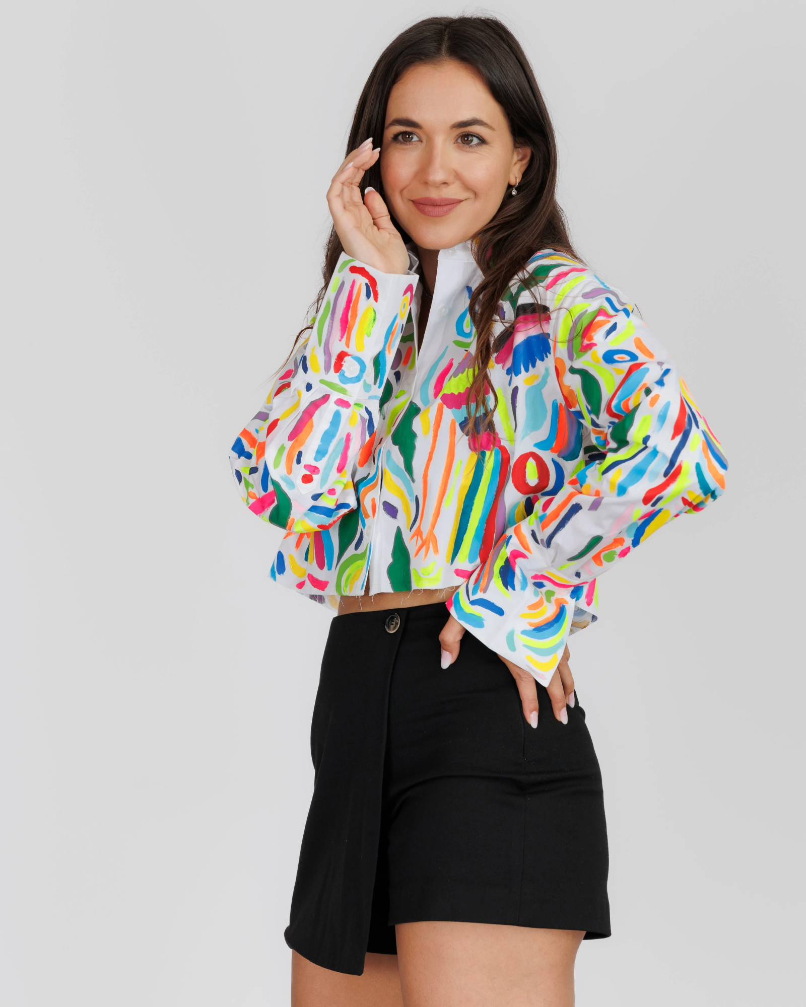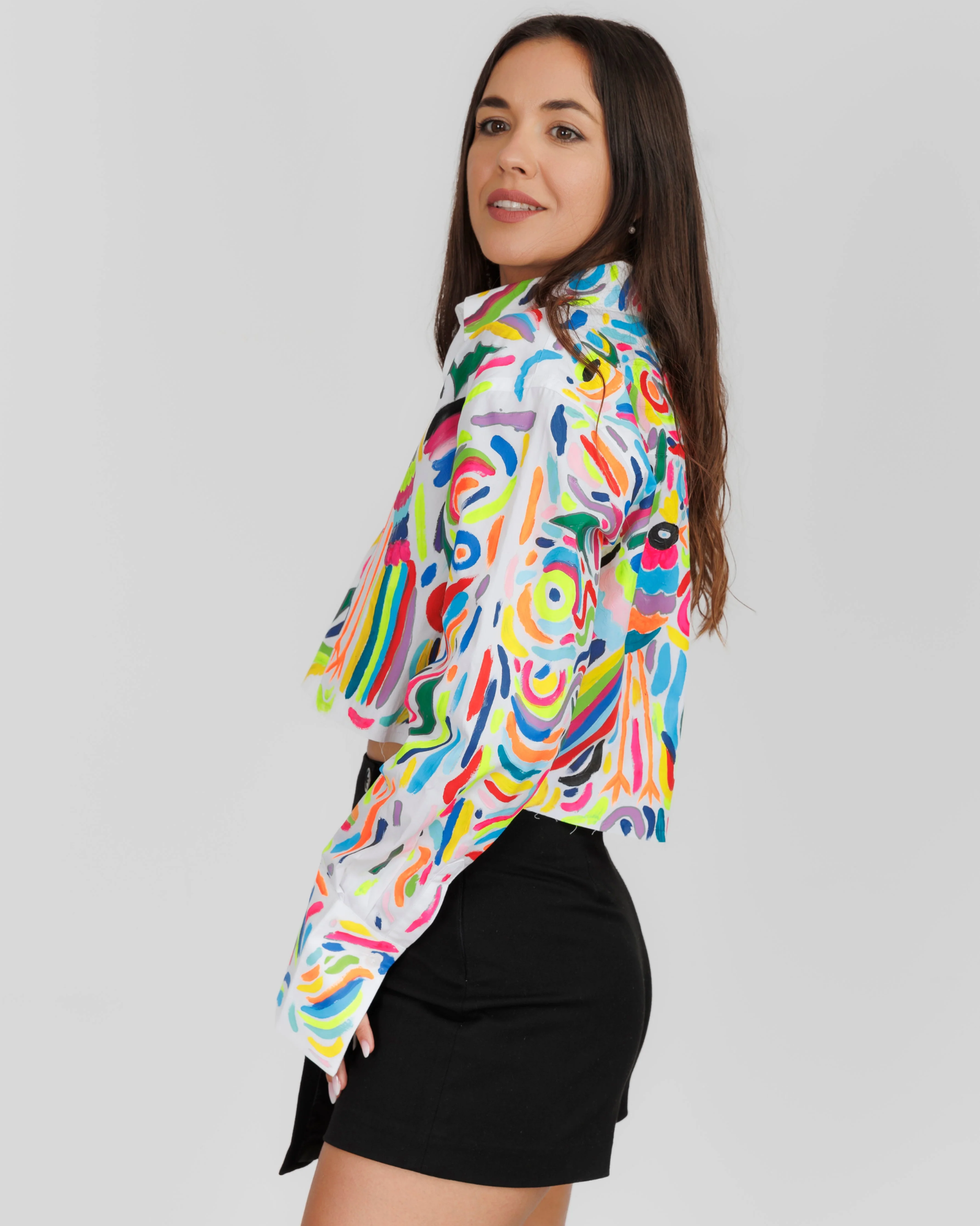 nualCel mai chic model de camasă din colecția noastră, modelul crop-top, vine însoțit de data aceasta cu un imprimeu plin de personalitate, un model de impact foarte potrivit pentru un festival, o vacanță, pentru un eveniment unde să te simți autentică este permis si apreciat. Acest model transmite libertate de exprimare, independență si iți oferă cadrul necesar să străluceștiși să te simți in același timp și confortabil. Arta nu este despre ce vedem, ci despre ce putem exprima prin alegerile noastre creative.