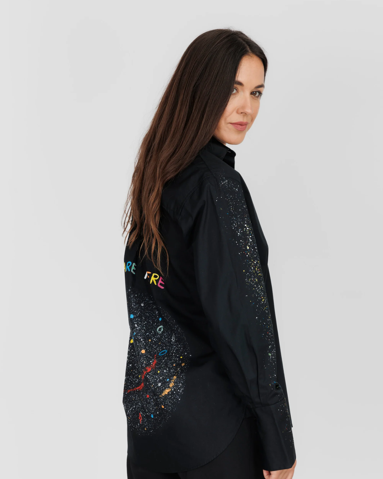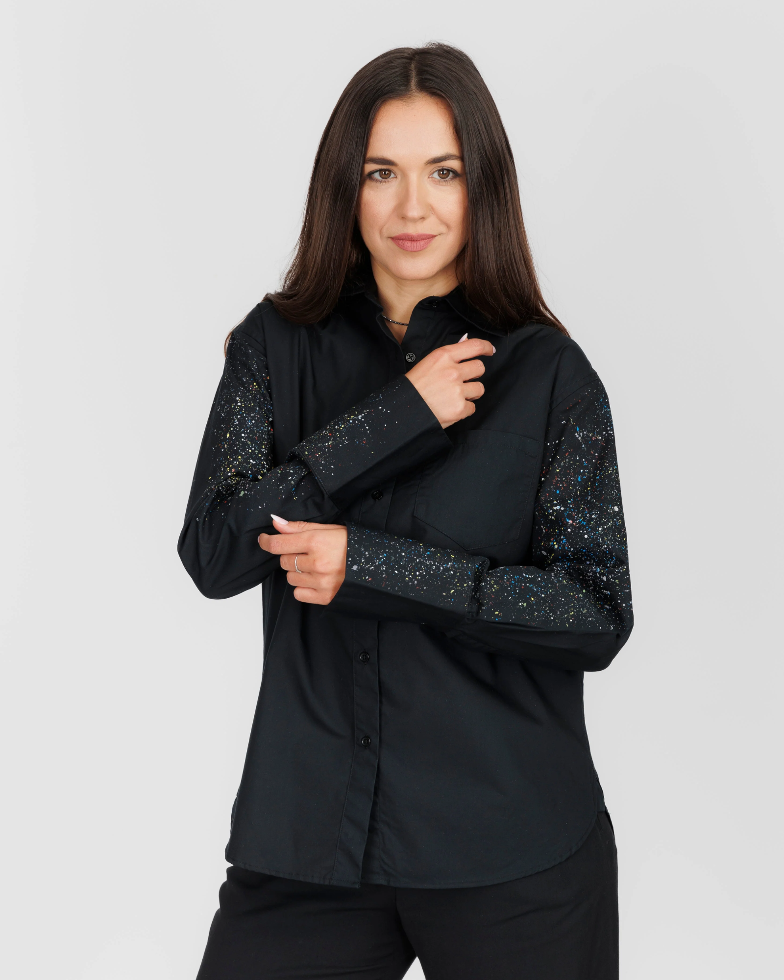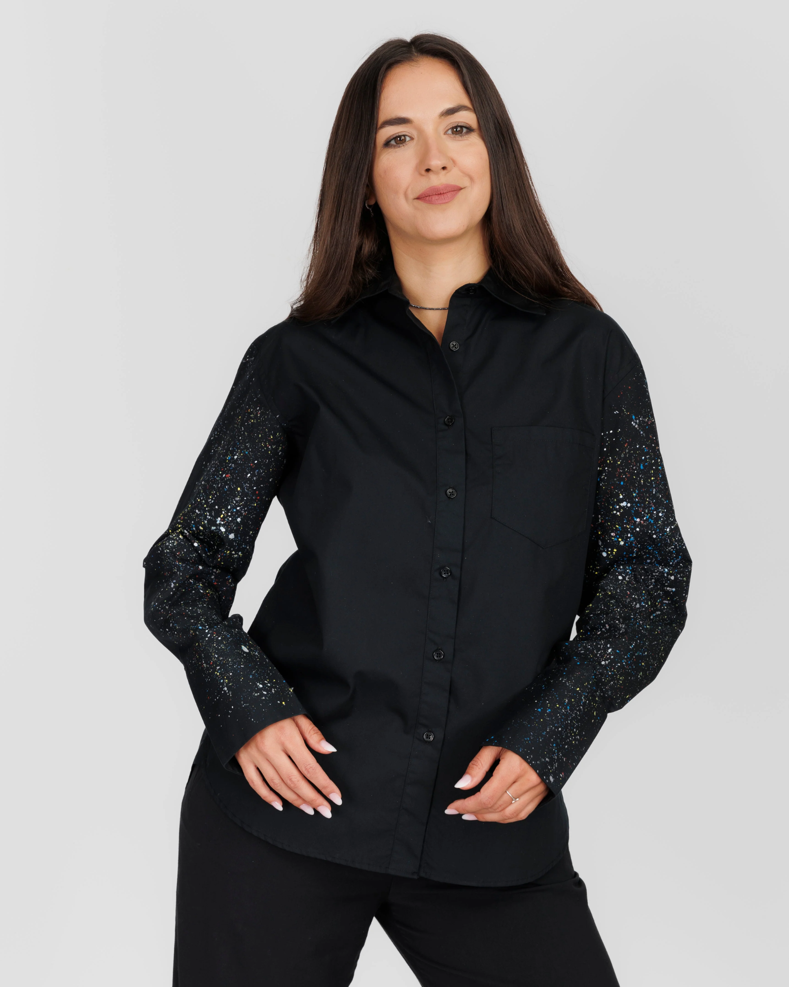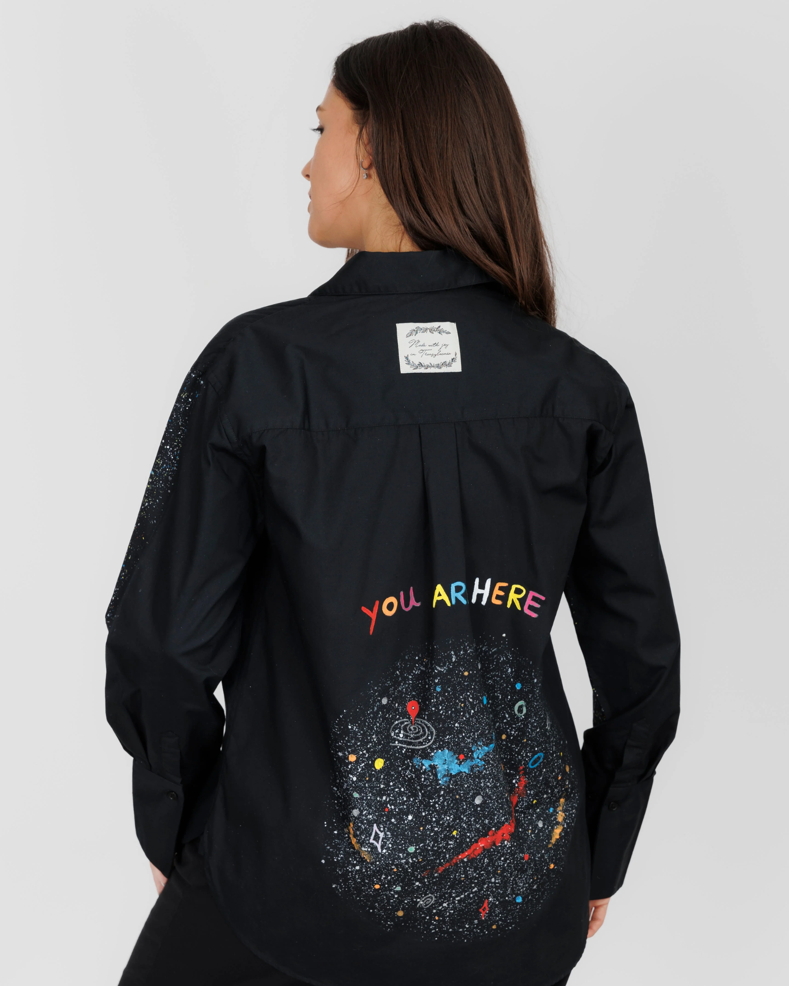 CĂMAȘĂ NEAGRĂ DAMĂ OVERSIZED "View of the earth"