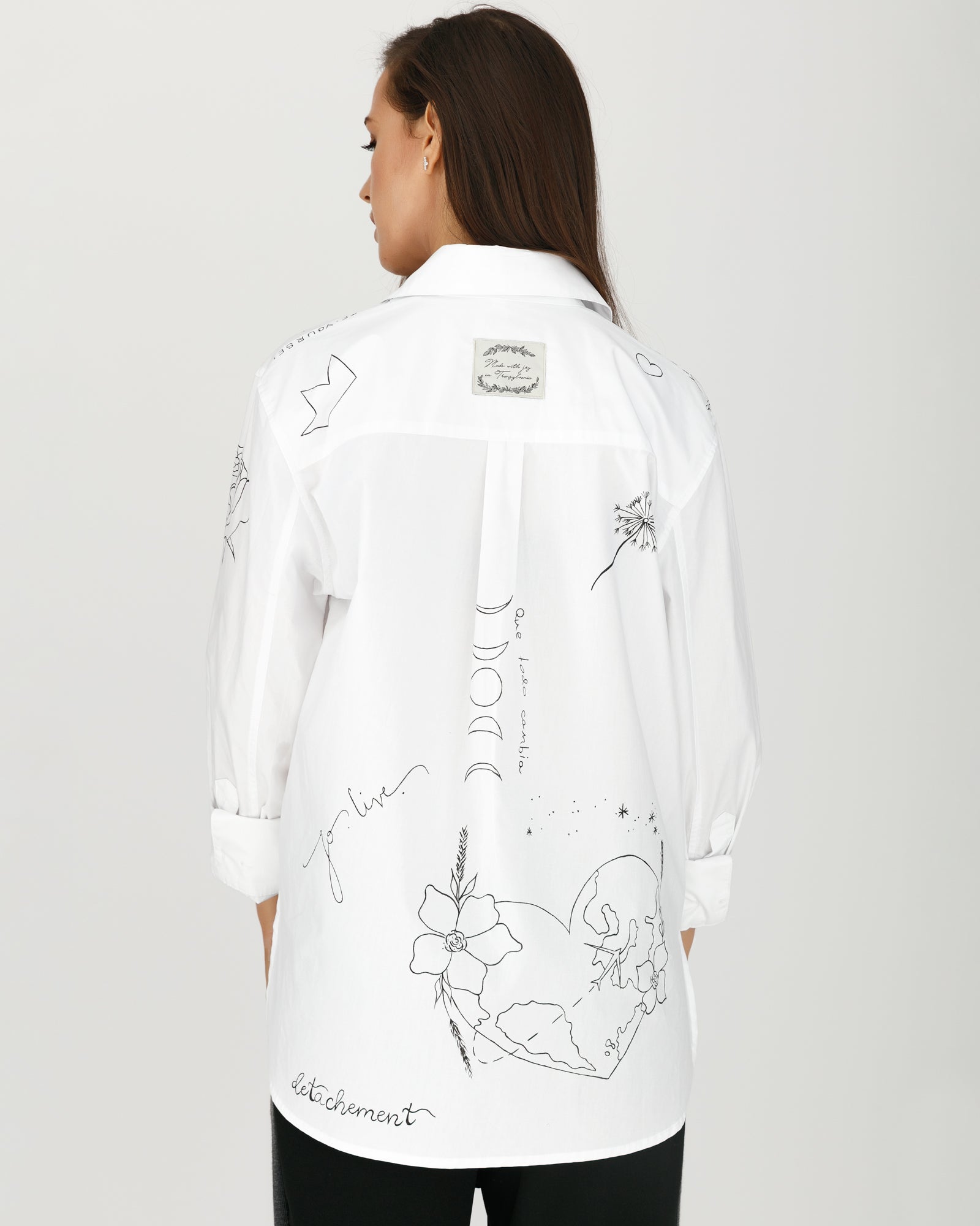 The oversized white shirt for women "Create yourself" will get you out of the dilemma on days when you don't know what to wear. Being made of cotton, it will give you comfort and lightness in any outfit you choose to integrate.