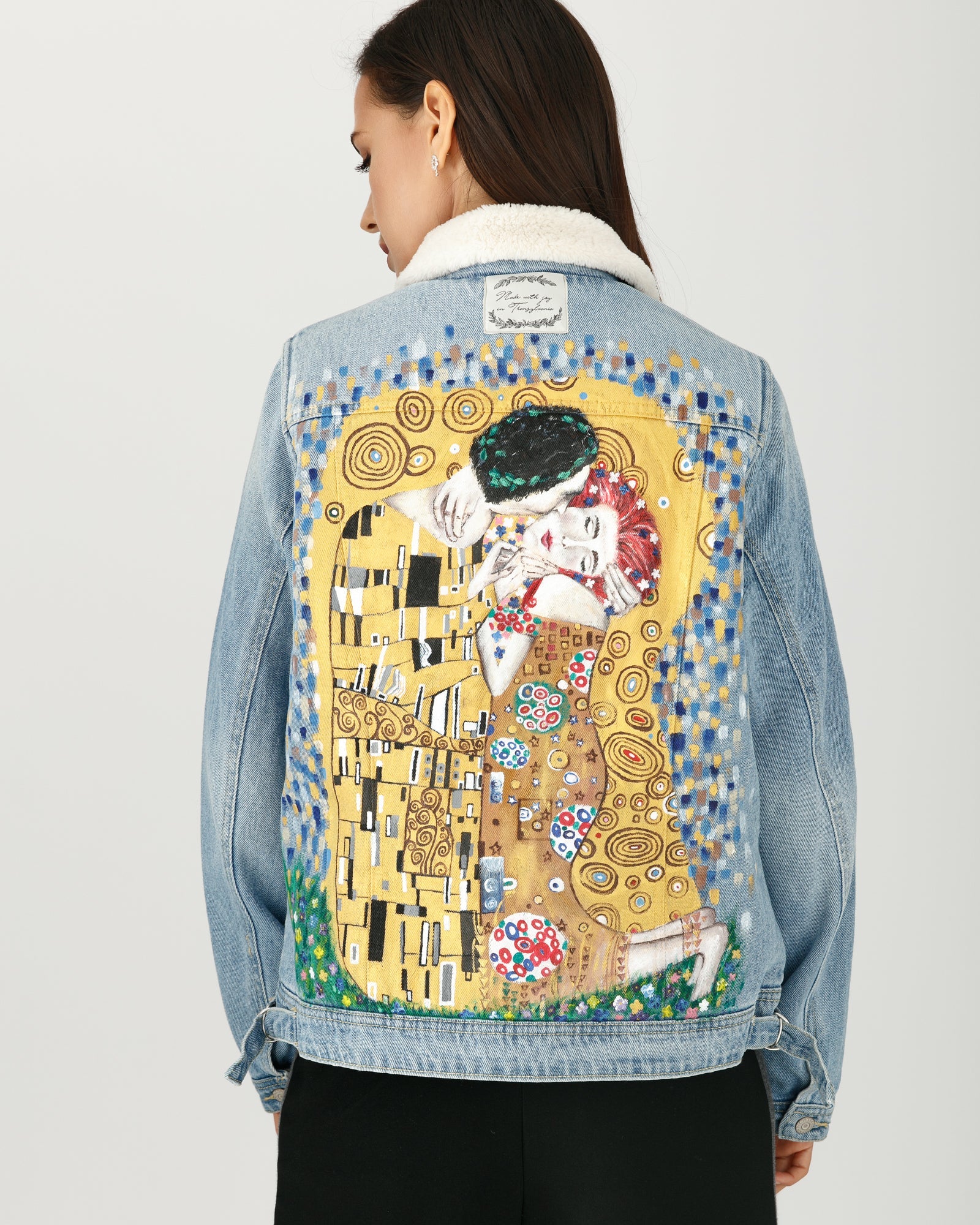 Jeans jacket famous painting "The Kiss - Gustav Klimt"