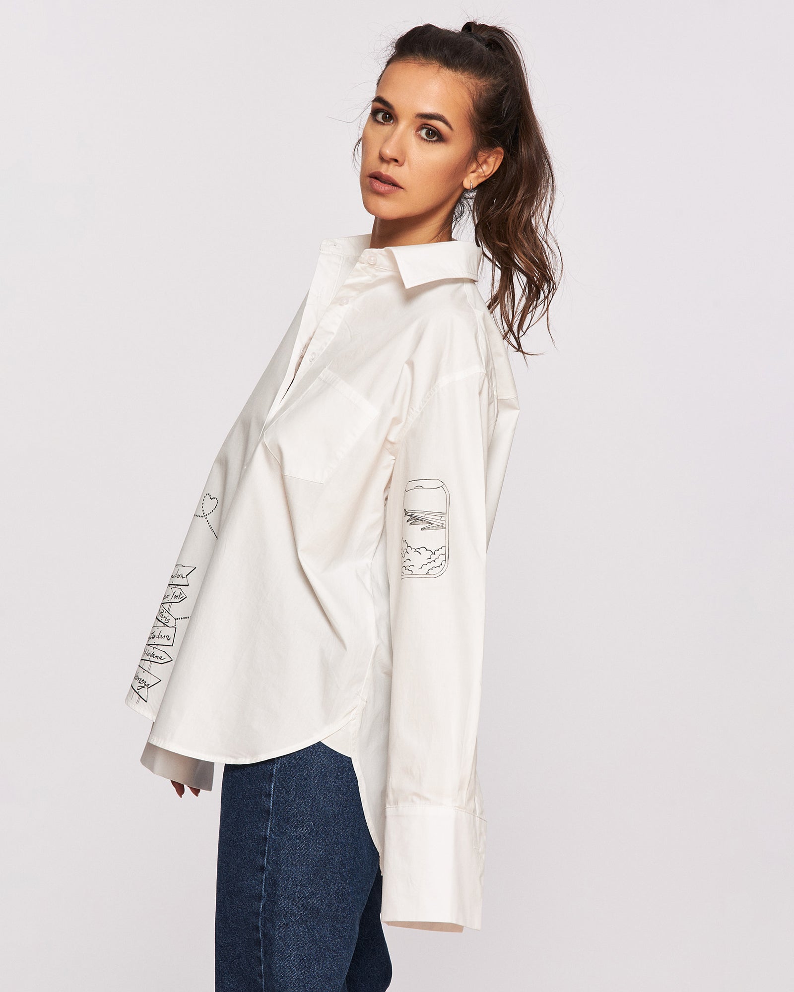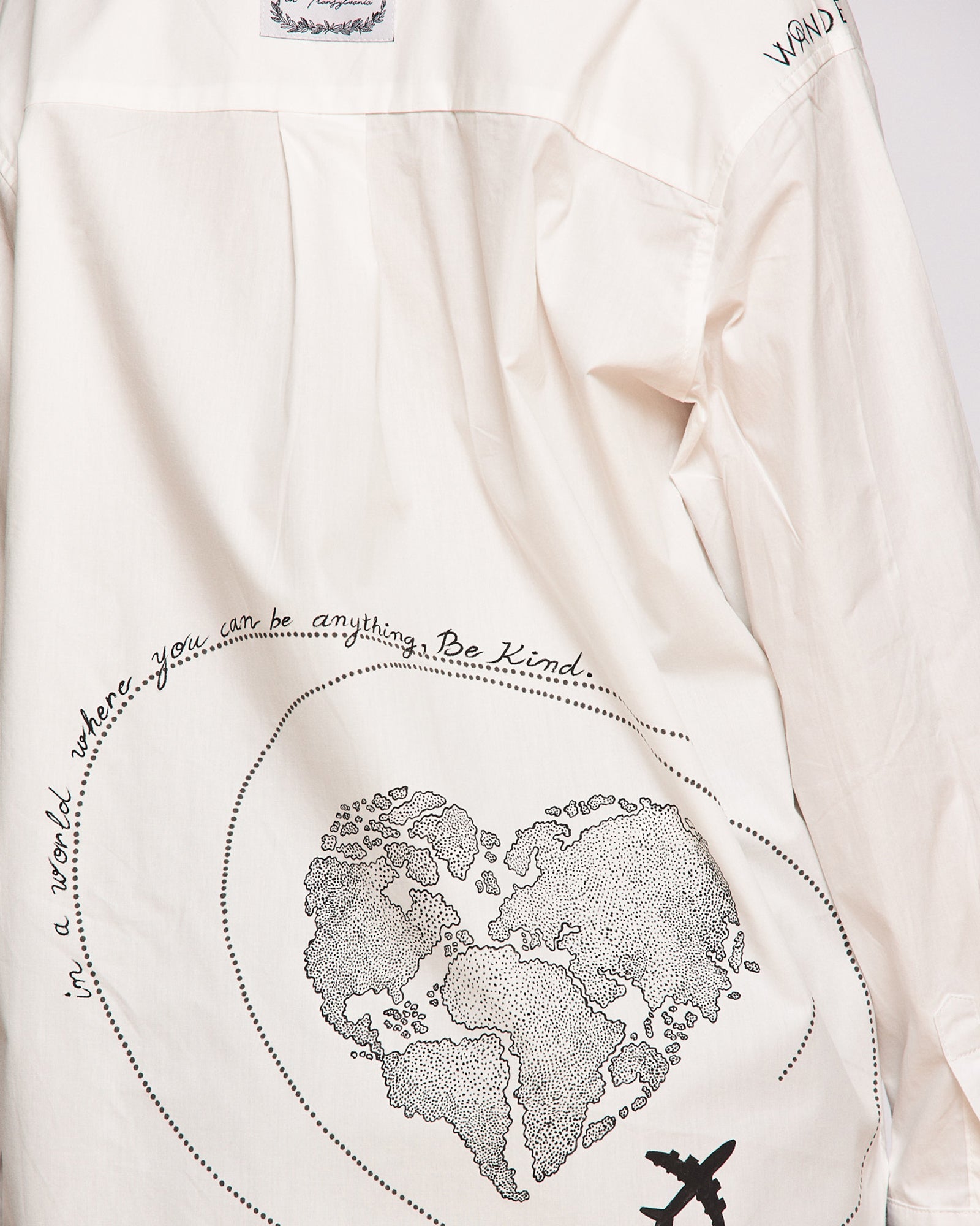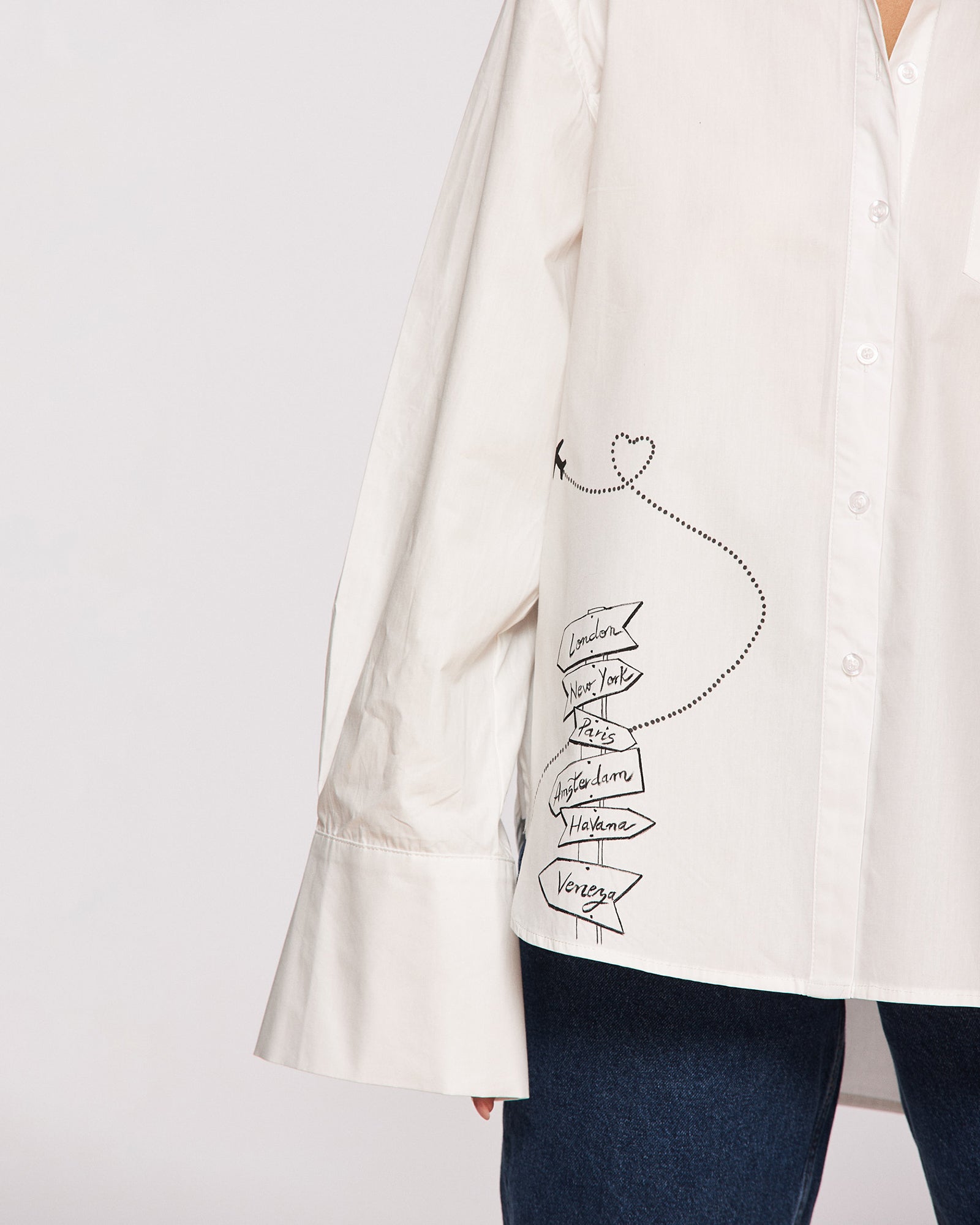 Whether you are passionate about fashion, art, gastronomy or simply want to walk the famous "Champ Elysee" boulevard, Paris is always a good idea. The shirt with a travel motif will be your source of inspiration in choosing the right destination. The loose cut, the material and the print transform this article of clothing into the key piece of the outfit. People who love to travel will definitely love this shirt.