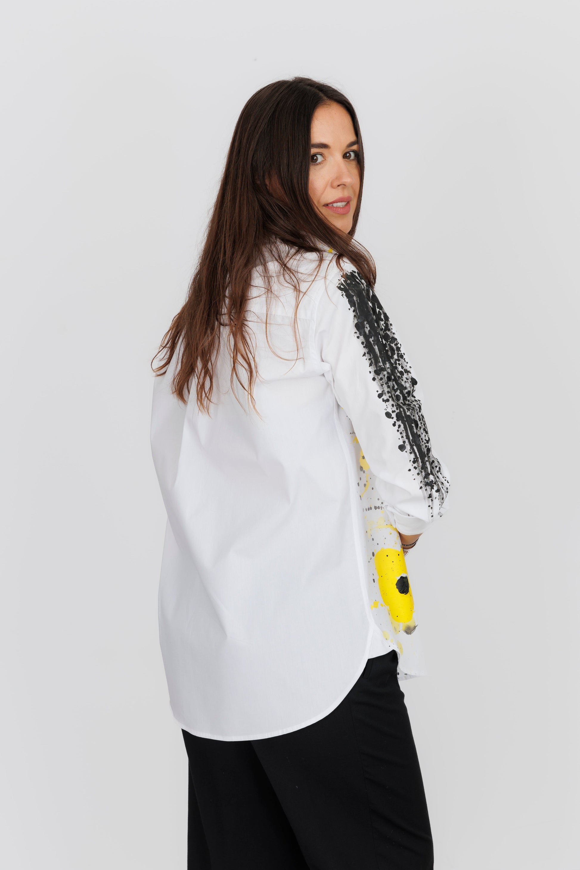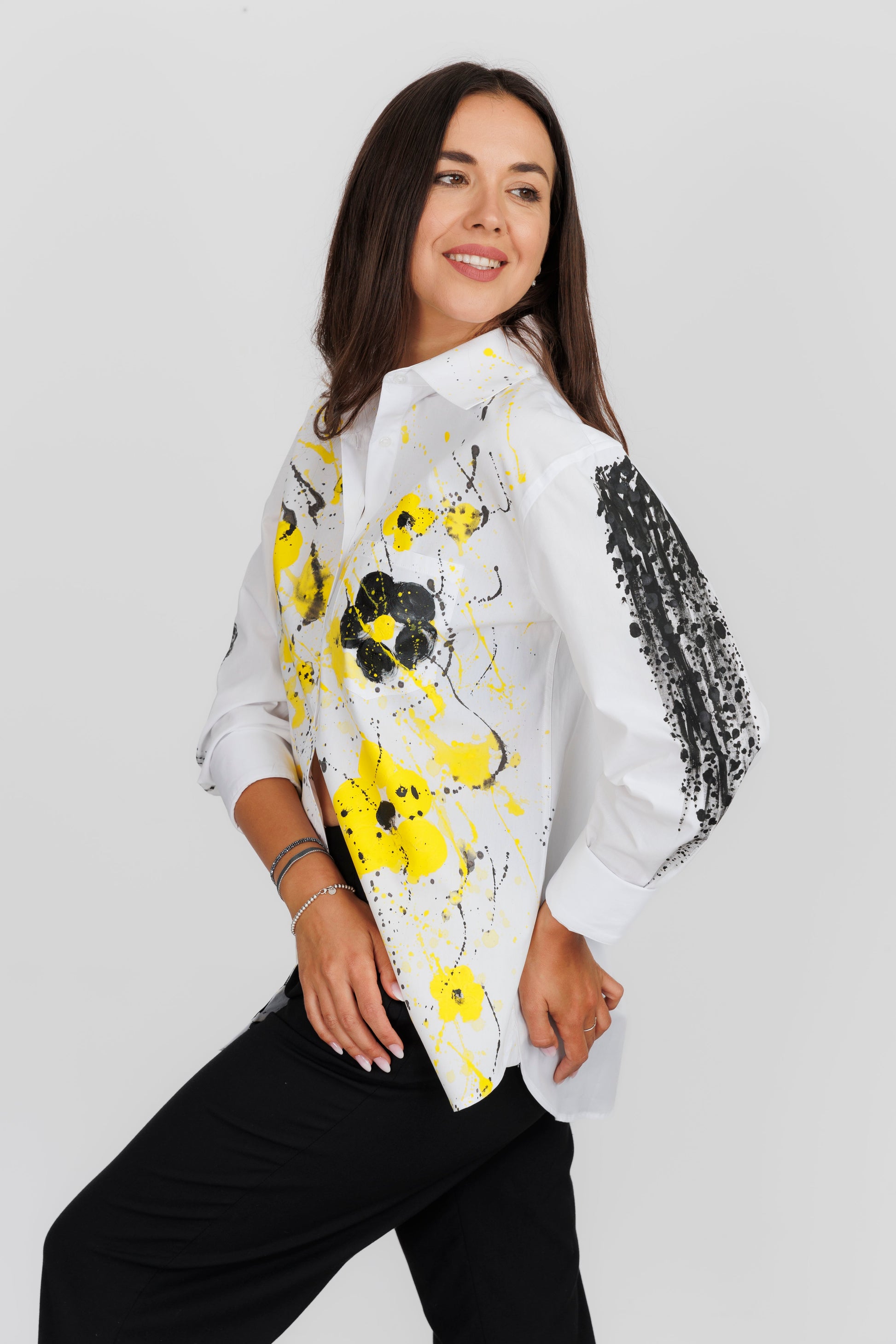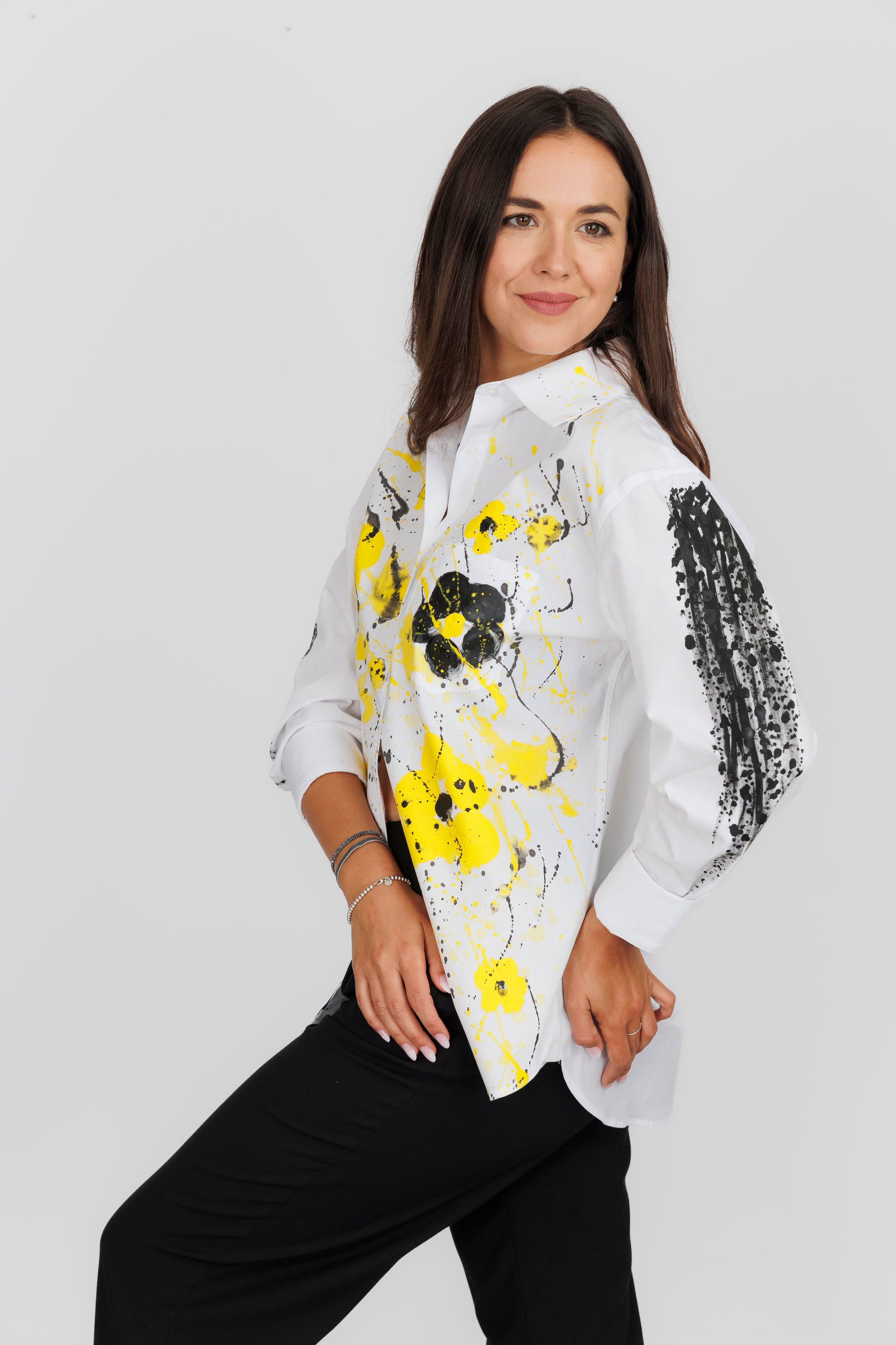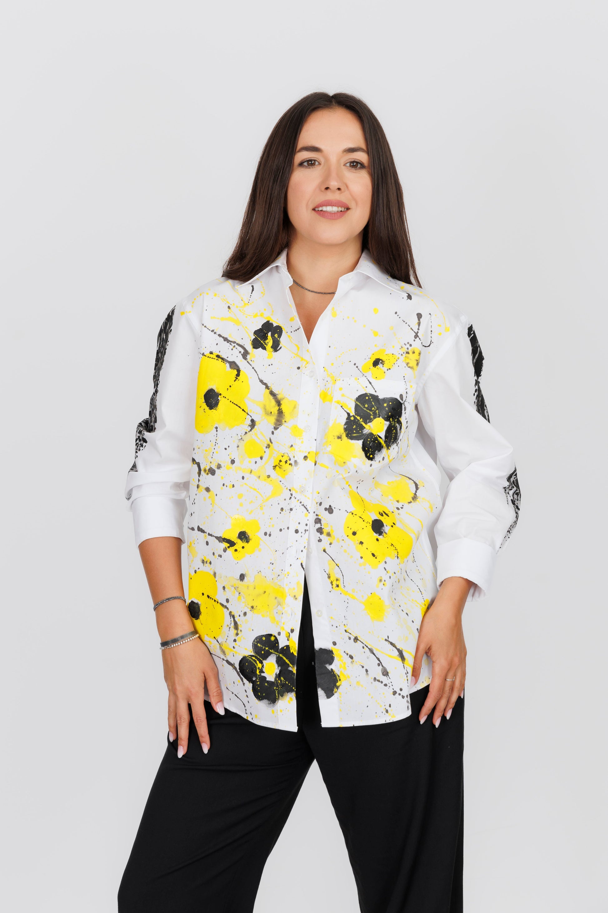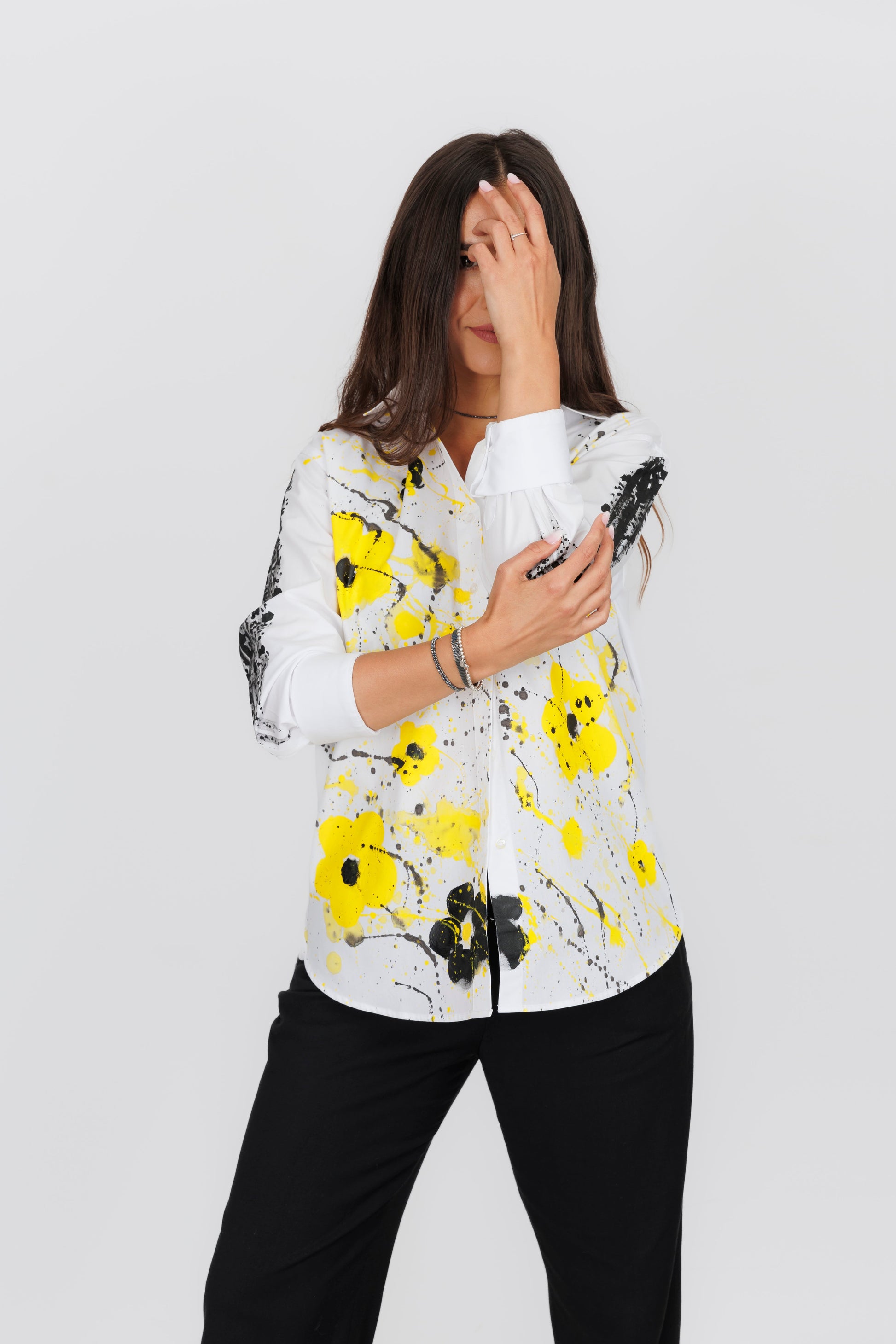 Cămașa alba oversized pentru femei "it is all yellow" te va scoate din dilemă în zilele în care nu știi ce să porți atunci cand culoarea pe care o indragesti este culoarea galben si iubesti si florile. Fiind realizată din bumbac, îți va oferi confort și lejeritate în orice ținută ai alege să o integrezi. Imprimeul cu tematica si plin de semnificatie se va contopi cu usurinta cu vibe-ul pe care doresti sa il transmiti.