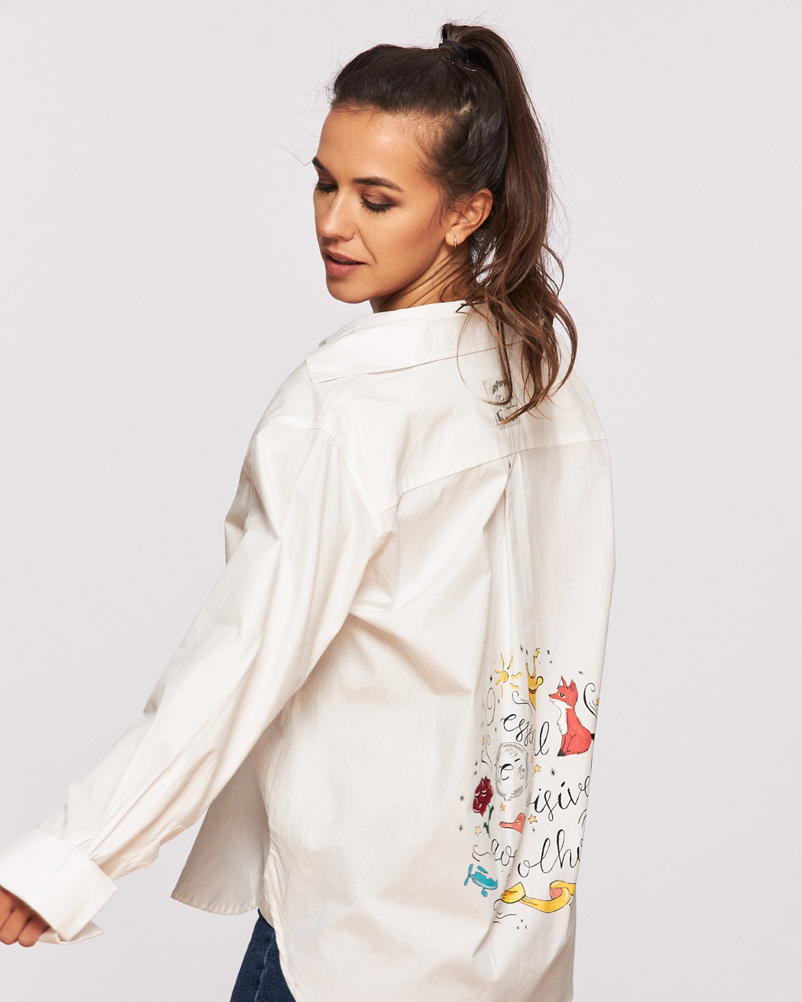 The oversized story shirt is a unique must-have in your wardrobe if you are someone who appreciates bright, colorful, playful clothing and wants her outfits and mood to be as. Inspired by the story "The Little Prince", this shirt brings out the childish side of every person, which we never want to part with.