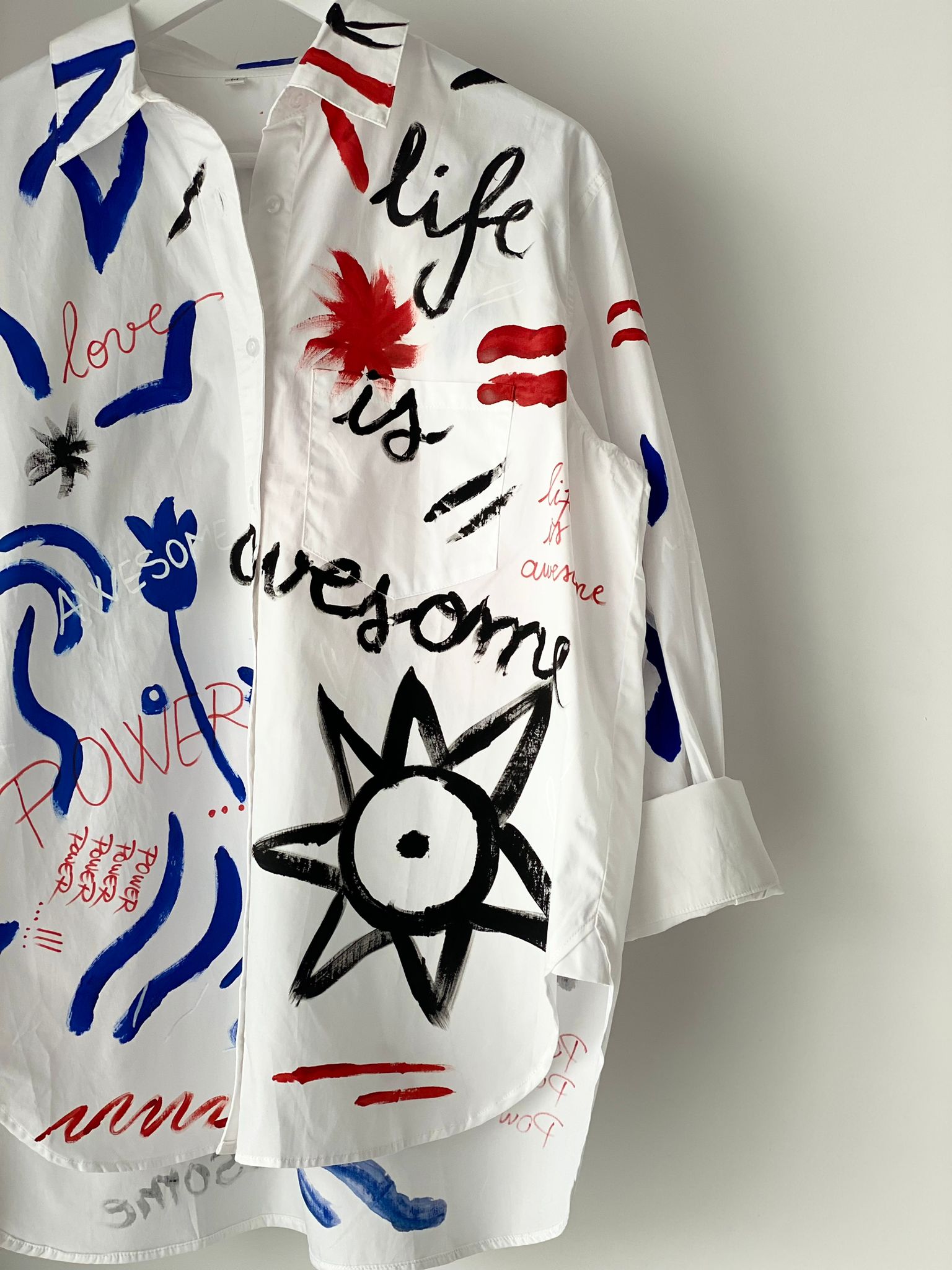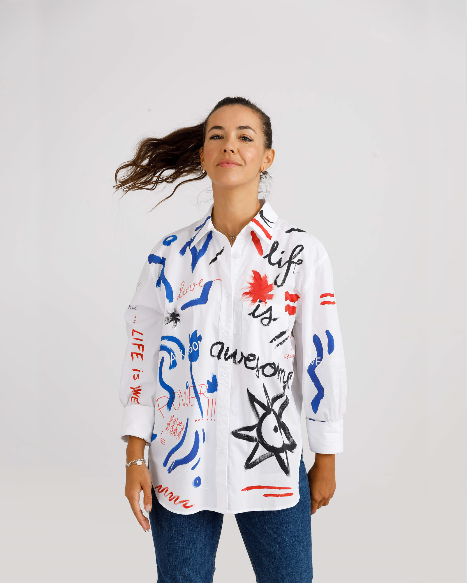 If you're looking for a piece of clothing that changes your mood every time you choose it, you've come to the right place! The "Joy" shirt is full of color and will bring life to both the outfit and the person wearing it. Use it in casual but also elegant outfits or simply over your bathing suit on your next vacation. "Happy happy joy" will be your new motto from now on.