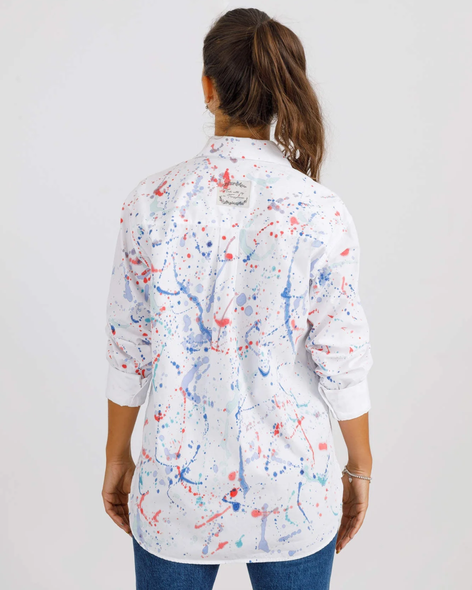 If you're looking for a piece of clothing that changes your mood every time you choose it, you've come to the right place! The "Joy" shirt is full of color and will bring life to both the outfit and the person wearing it. Use it in casual but also elegant outfits or simply over your bathing suit on your next vacation. "Happy happy joy" will be your new motto from now on.