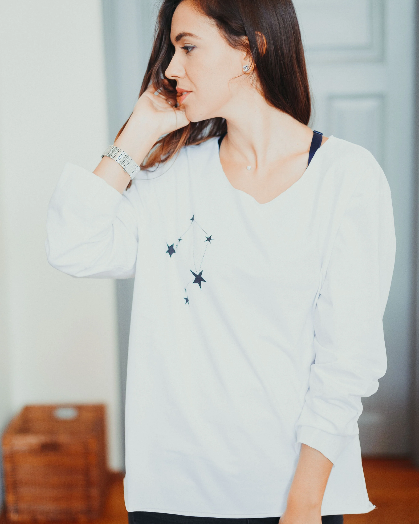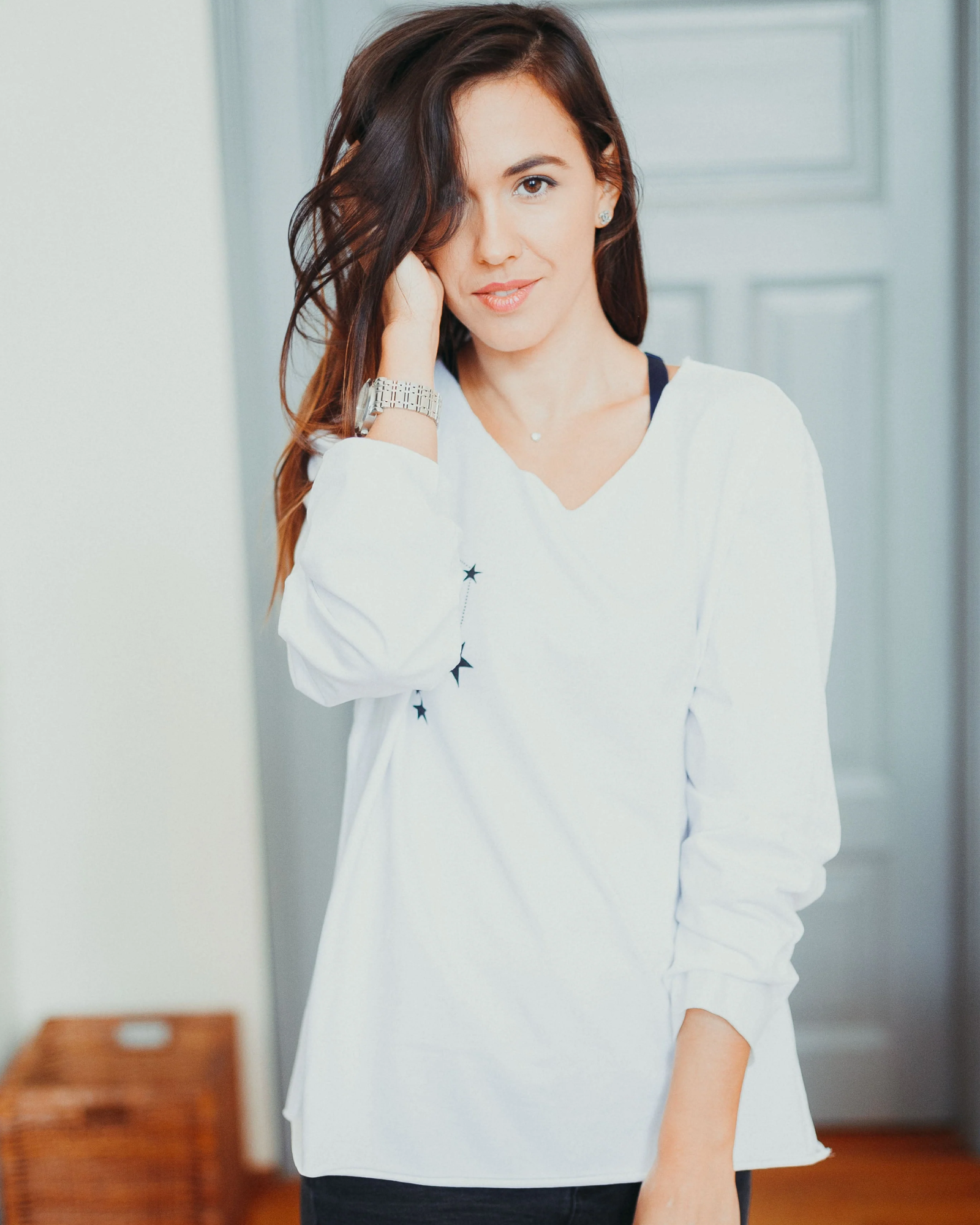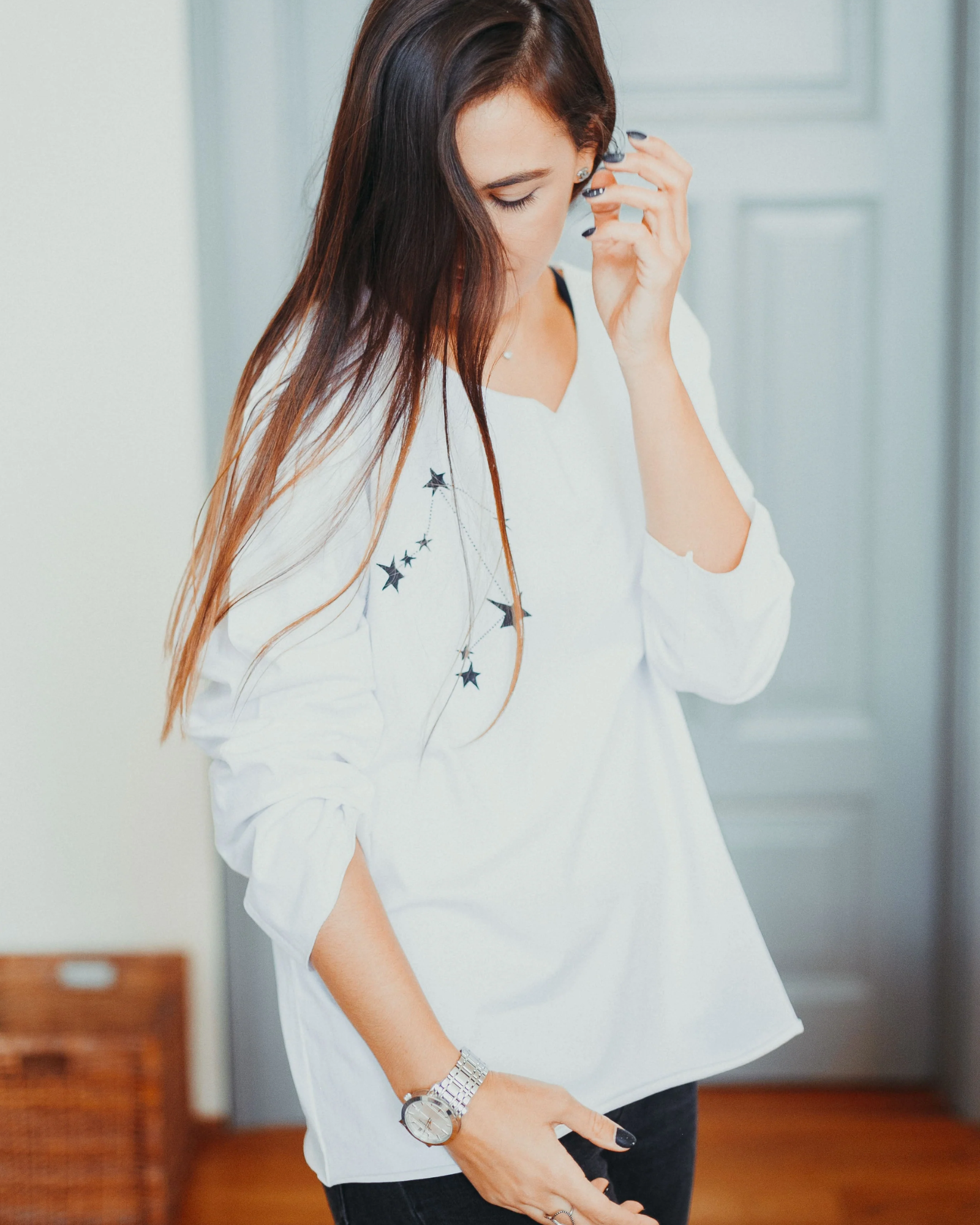 Light and super comfortable blouse "You are only a moment", will definitely a difference in your outfits. The hoodie convinces with its lightness, design and hand-painted message, which can be changed with anything.