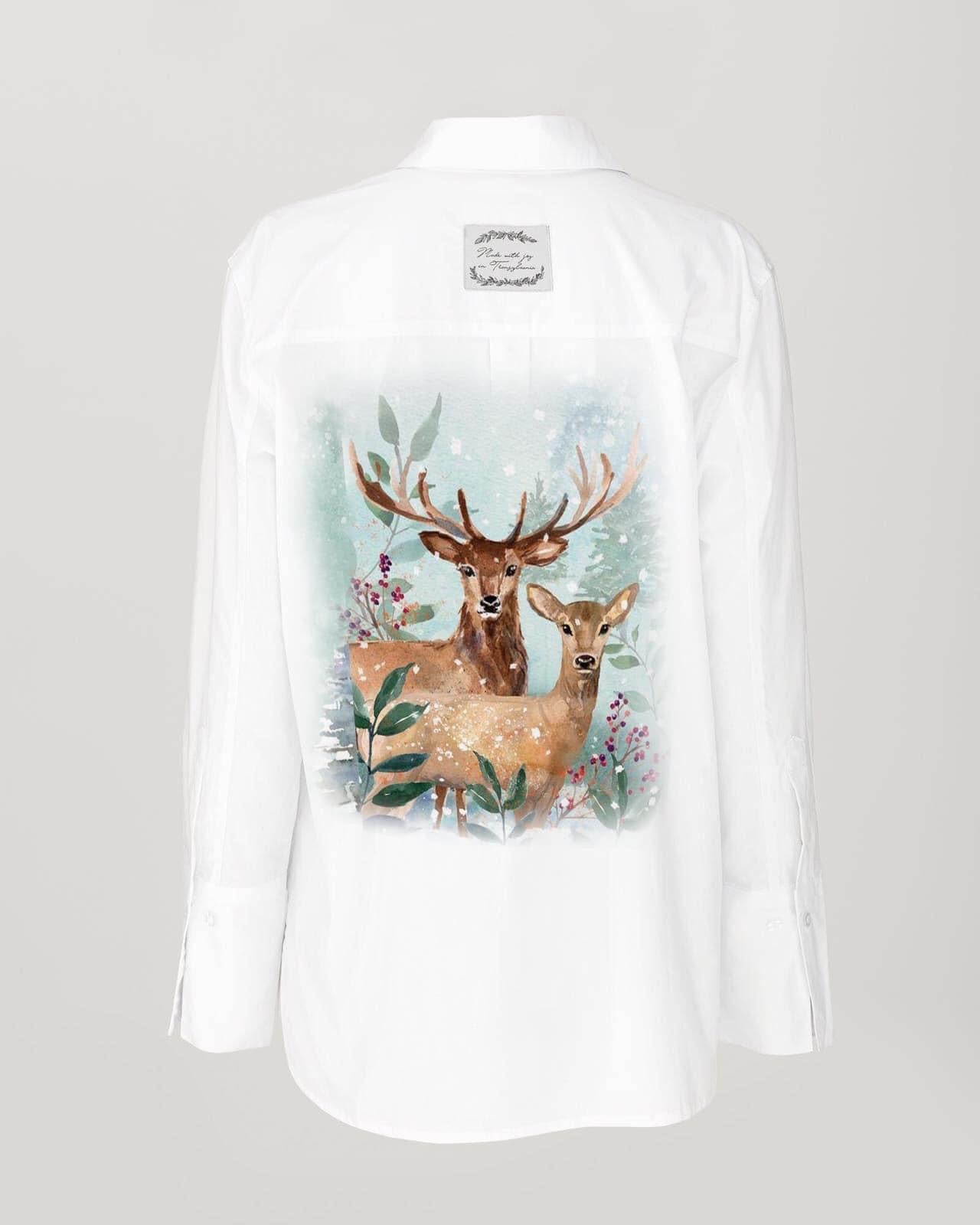 The hand-painted shirt''Harmony'' subtly captures the essence of the winter holidays, their joy and magic.