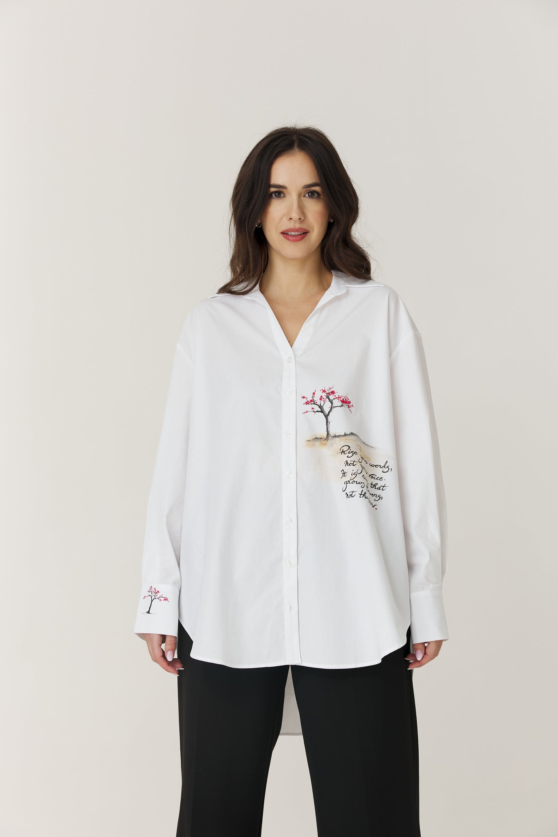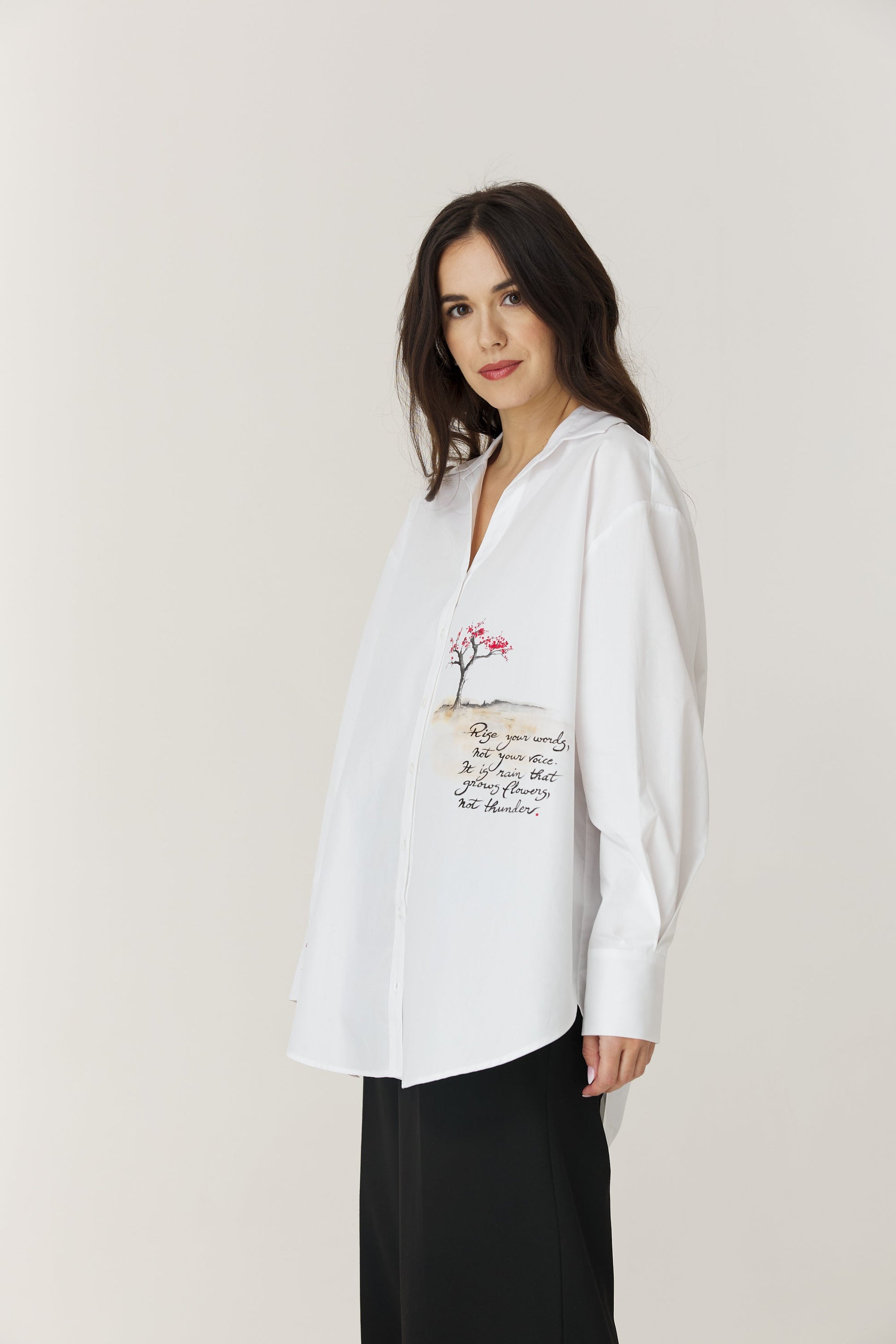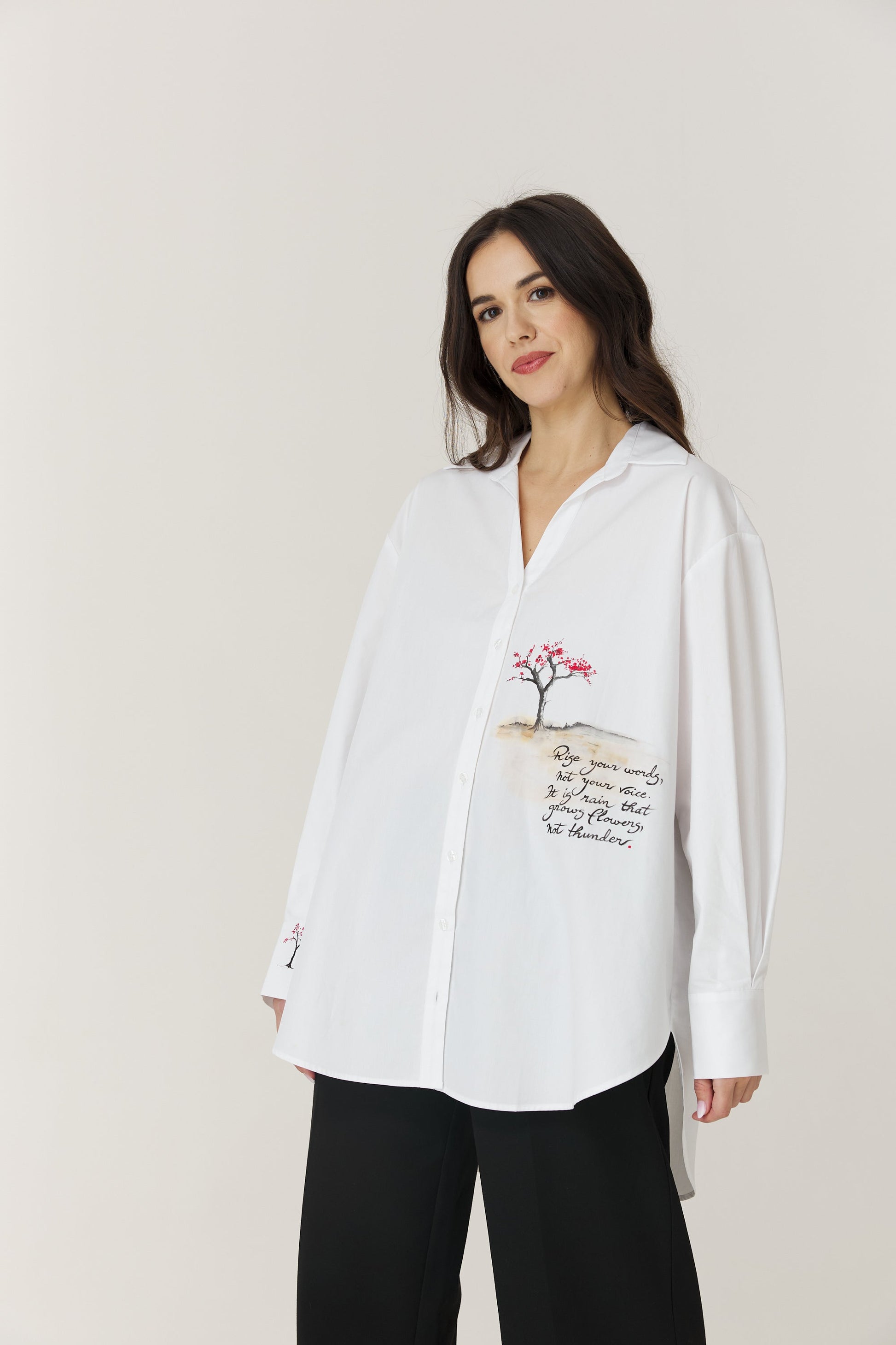 Embrace positivity and style with our Inspirational Blossoms Blouse, adorned with a pink tree motif and a motivating quote. This charming piece combines the beauty of nature with uplifting words to inspire confidence and joy. Whether worn casually with jeans or dressed up for a special occasion, this blouse is a reminder to bloom where you are planted and embrace the journey of growth and self-discovery.
