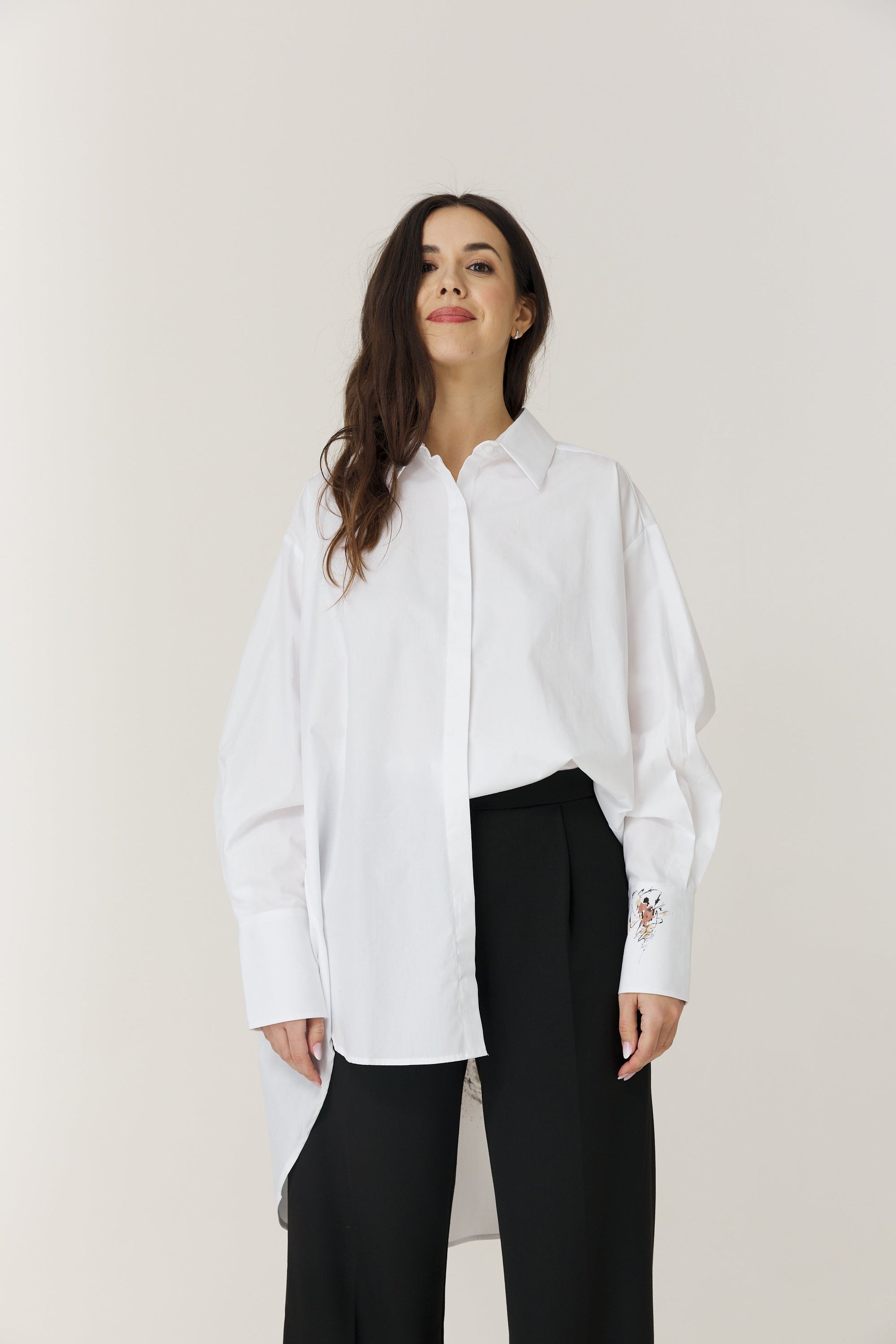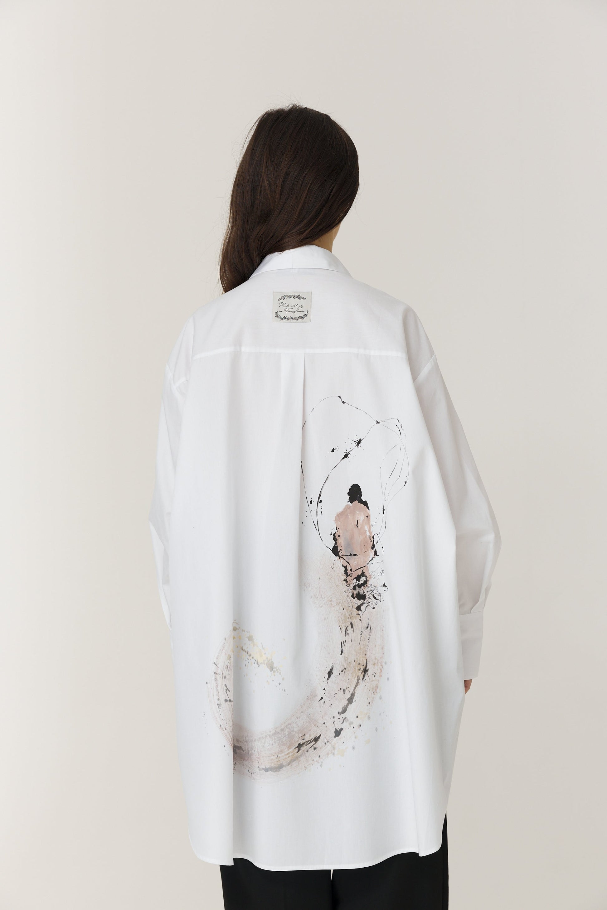 Step into the realm of elegance with this extraordinary shirt, featuring a captivating silhouette of a woman gracefully departing. Crafted with meticulous attention to detail, this shirt boasts a striking elongated back hem, accentuating the fluidity of movement and the allure of departure. The silhouette of the woman, with her graceful posture and flowing lines, adds an element of mystery and intrigue to the garment. As you wear this shirt, you embody the spirit of departure and transformation, embracing the journey ahead with poise and grace. Let this shirt be your symbol of empowerment and adventure, a reminder that every step forward is a testament to your strength and resilience.