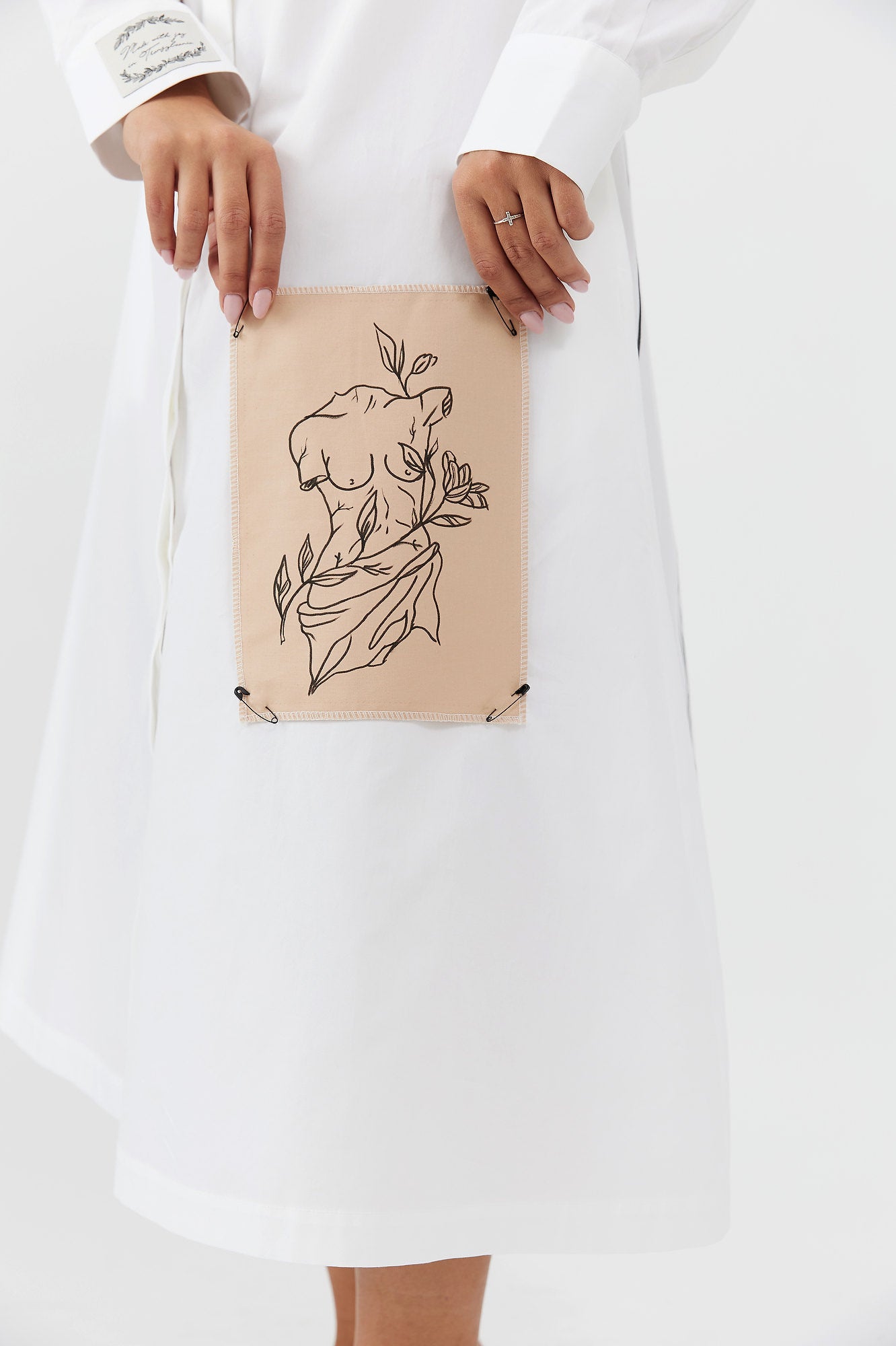 "Larch" te ajută să-ți personalizezi ținuta în totalitate cu patch-urile detașabile pe care le poți poziționa cum dorești! Acest model are și picturi realizate manual pe lateralele rochiei.