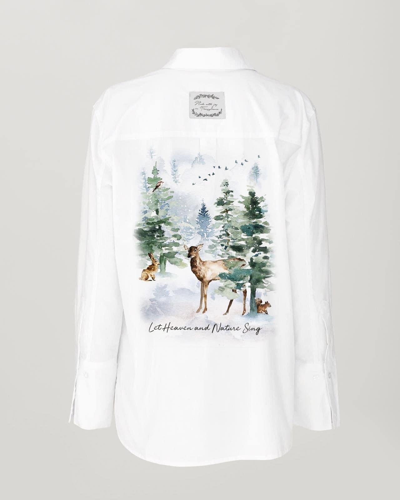 The hand painted shirt ''Nature Wonders'' is a real poem. The colors blend perfectly with the delicate material bringing the magic of discovery, harmony and calm into our lives.