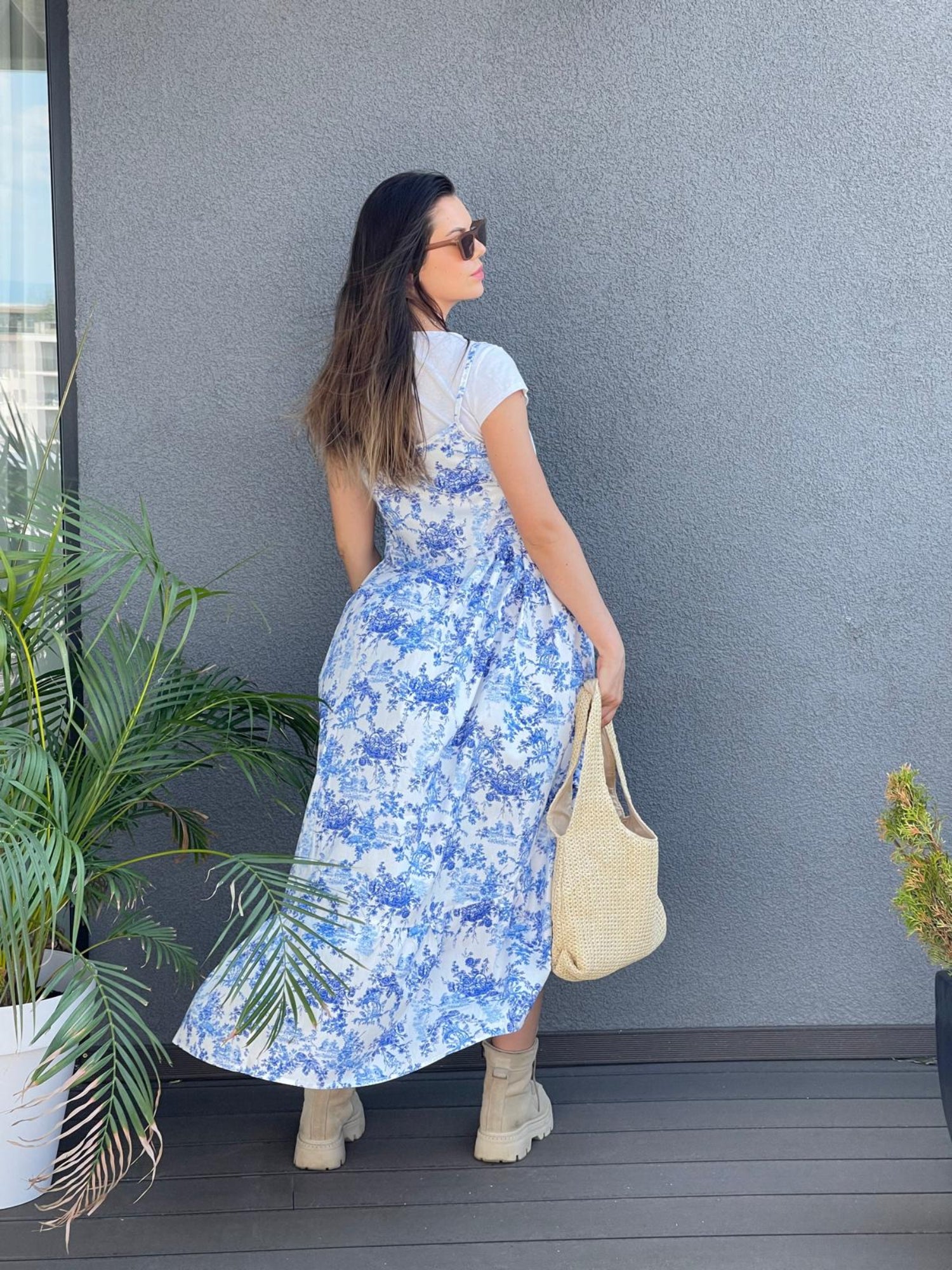 Rochia Azure Whisper aduce un aer delicat de vară în ținuta ta. Materialul lejer și imprimeul albastru o transformă în alegerea ideală pentru plimbări la soare sau momente relaxate de vacanță.