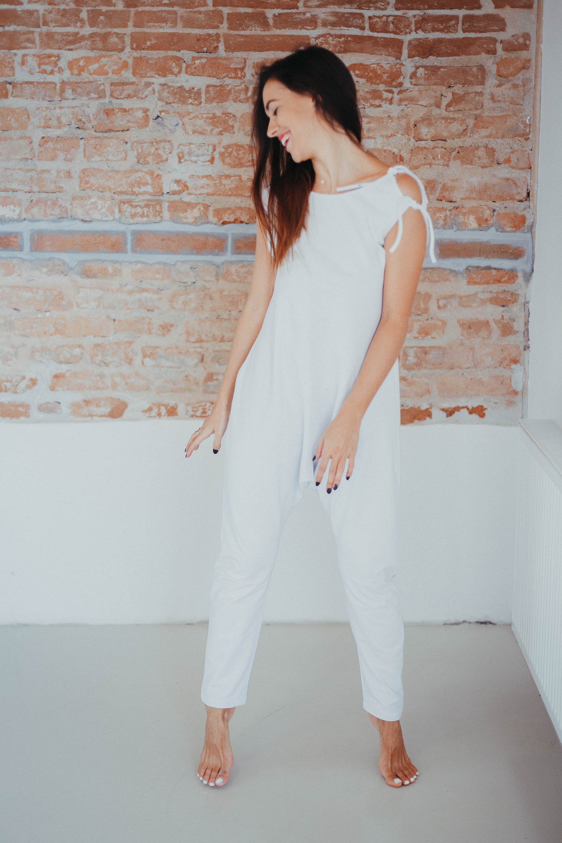 The "White Dream" suit is suitable for any sport and lifestyle. Comfortable in any season. The overall design is simple, minimalist, but feminine. The back of the jumpsuit is cut out, a detail that gives a mysterious and sexy air to any woman who chooses to wear this piece.