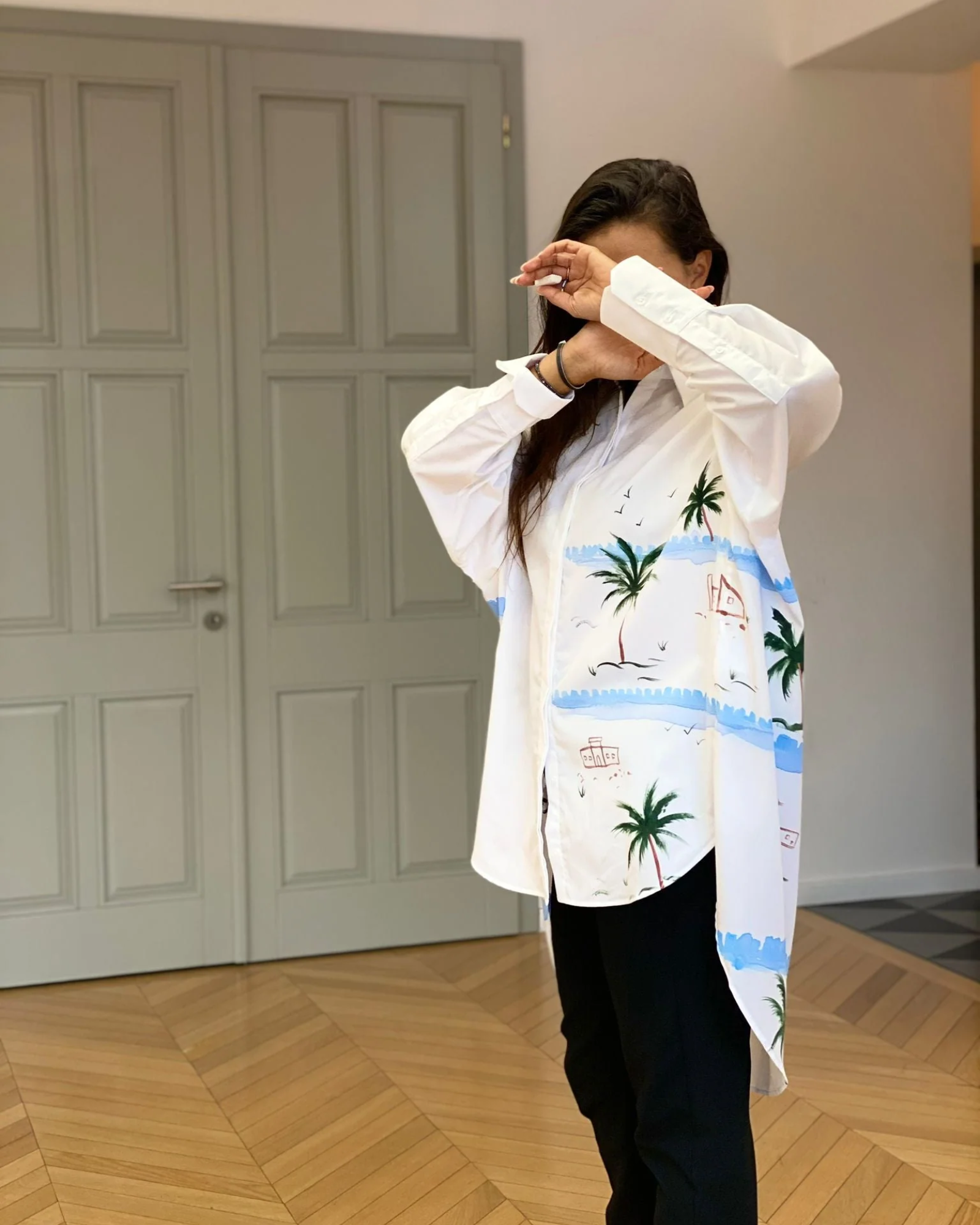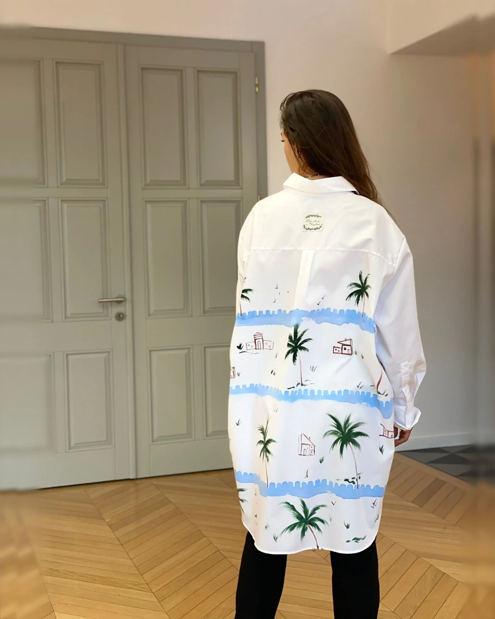 Oricine își dorește să aibă parte de frumusețile exotice ale lumii, iar noi facem posibilă această dorință prin cămașa noastră pictată manual "TAKE ME TO THE OCEAN". Dacă ești în căutarea unui cadou cu adevărat special pentru o persoană dragă, sau dacă ești chiar tu o iubitoare a călătoriilor, noi iți venim în ajutor cu noua colecție "TRAVEL", având o varietate de picturi realizate manual. Fiind croite dintr-un material lejer, de cea mai bună calitate, cămășile noastre își vor face foarte ușor loc în garderoba ta.