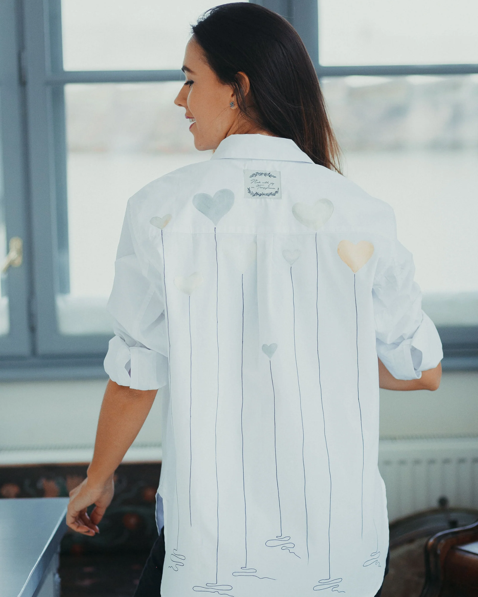 De asemenea, dacă vrei să adaugi personalitate stilului propriu, indiferent de împrejurări, alege cămașa "Hearts balloons", cu inimioare pictate în culori pale.