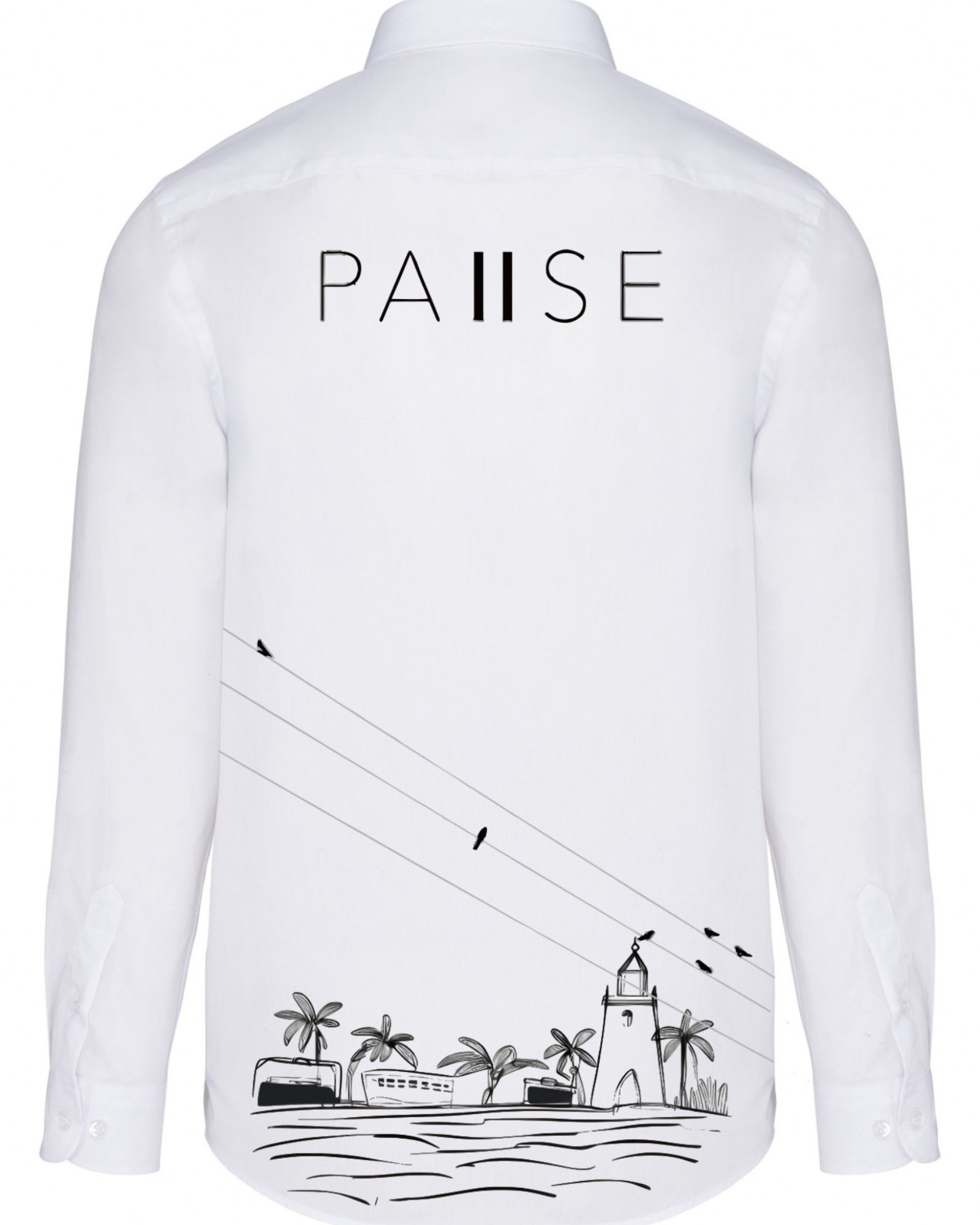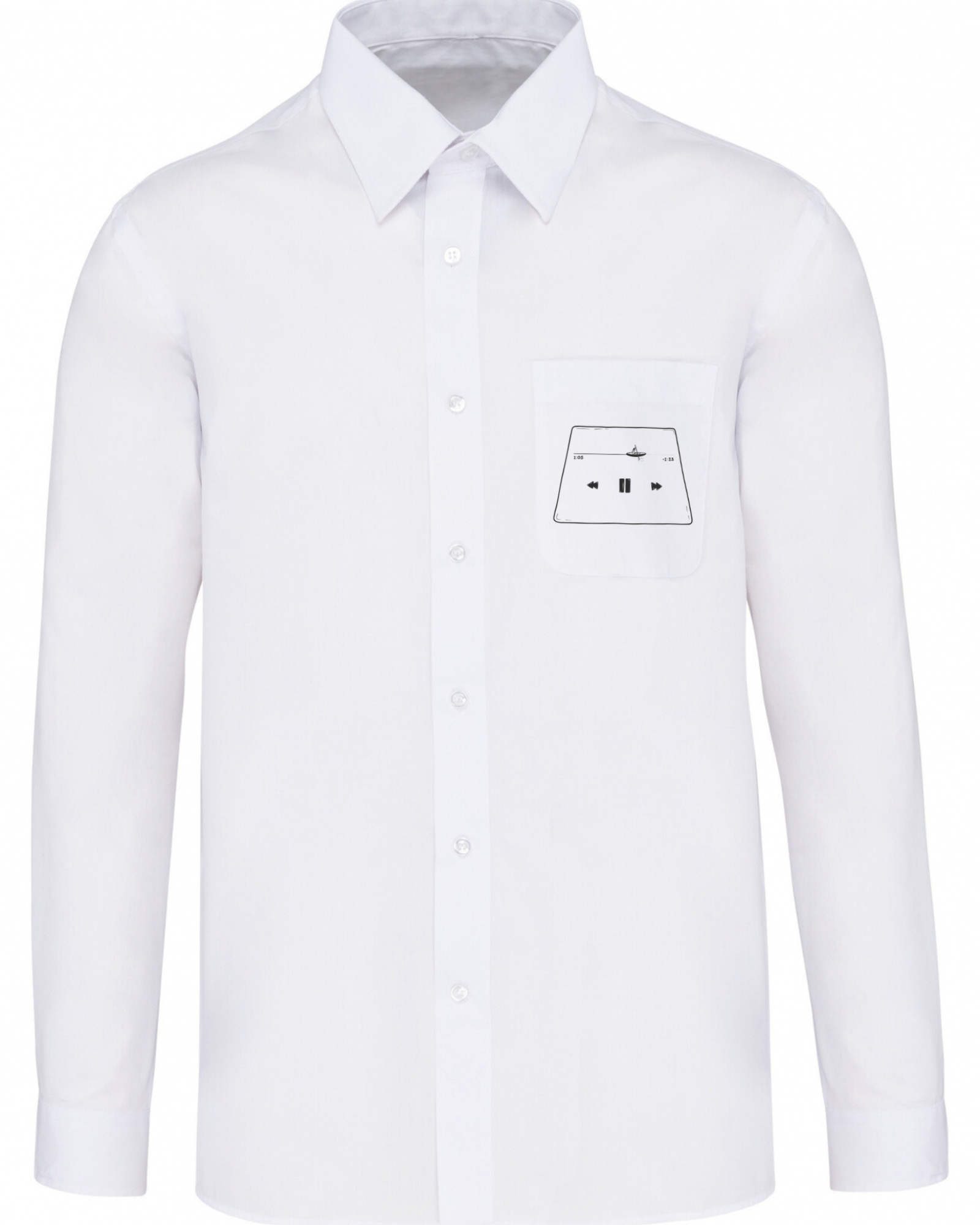 Această cămașă este unică prin designul său, pe spate apare un model care face referire la pauză, la un moment de respiro, iar pe buzunarul din față se poate observa display-ul unei melodii, dar și conturul unei piscine, care ne duce gândul la relaxare. Este o alegere excelentă pentru cei care caută atât stil, cât și confort în vestimentația lor cotidiană. Această cămașă masculină, fabricată din bumbac de înaltă calitate, are un croi lejer pentru a oferi confort și libertate de mișcare pe tot parcursul zilei.