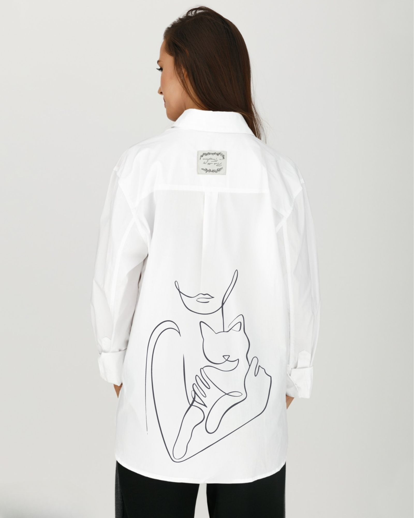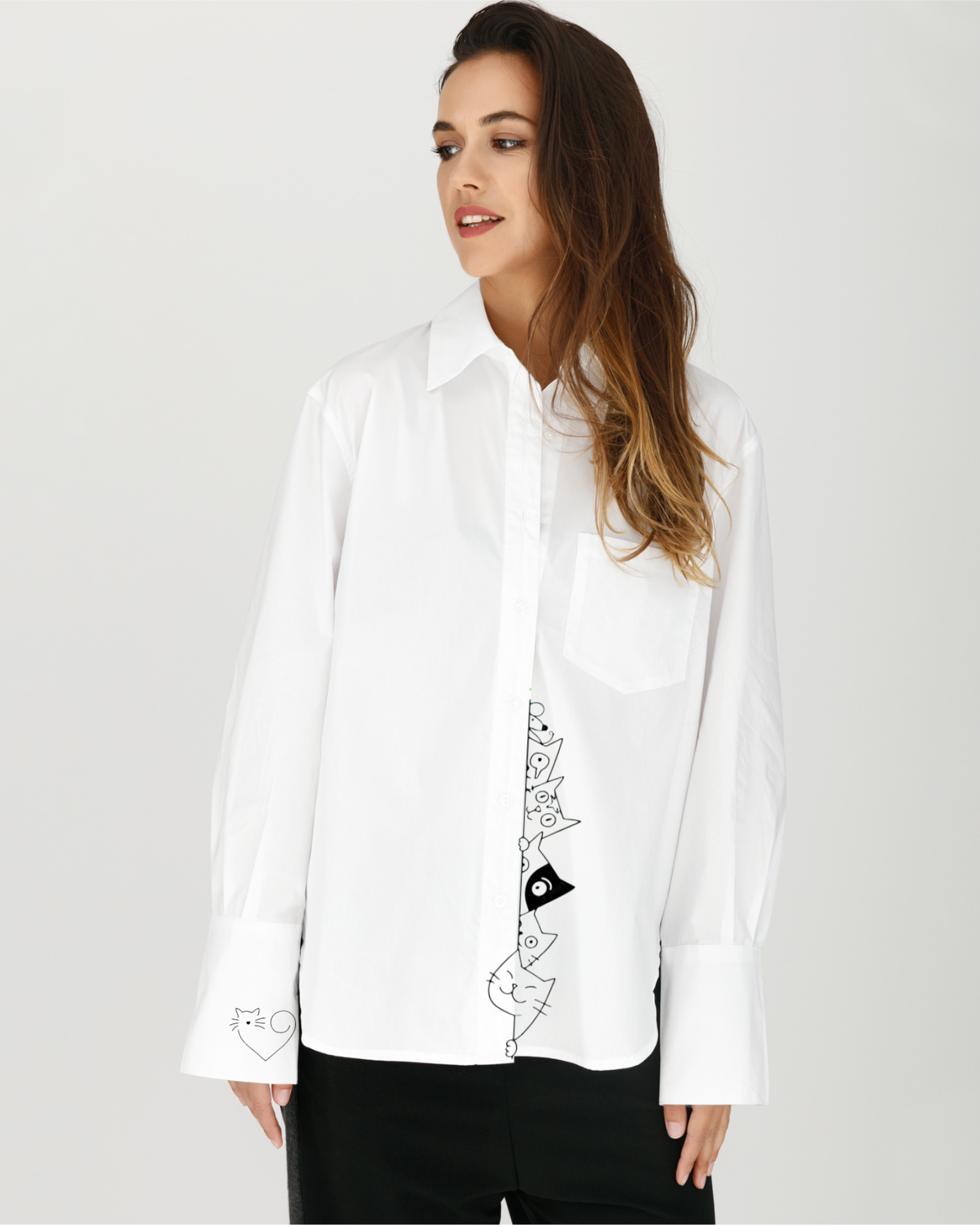 Designul său adorabil, care reprezintă orice iubitoare de pisici și prietenul său blănos, îți va aminti cu drag de cine te așteaptă cu drag acasă. Cămașa "Special little one" este un articol vestimentar care îți oferă încredere și totodată îți aduce un zâmbet pe buze. Aceasta are un croi lejer, ușor oversized, astfel încât să fie perfectă pentru orice ocazie, fie o ieșire în oraș, fie o întâlnire casual, va asigura mereu că ești în centrul atenției.