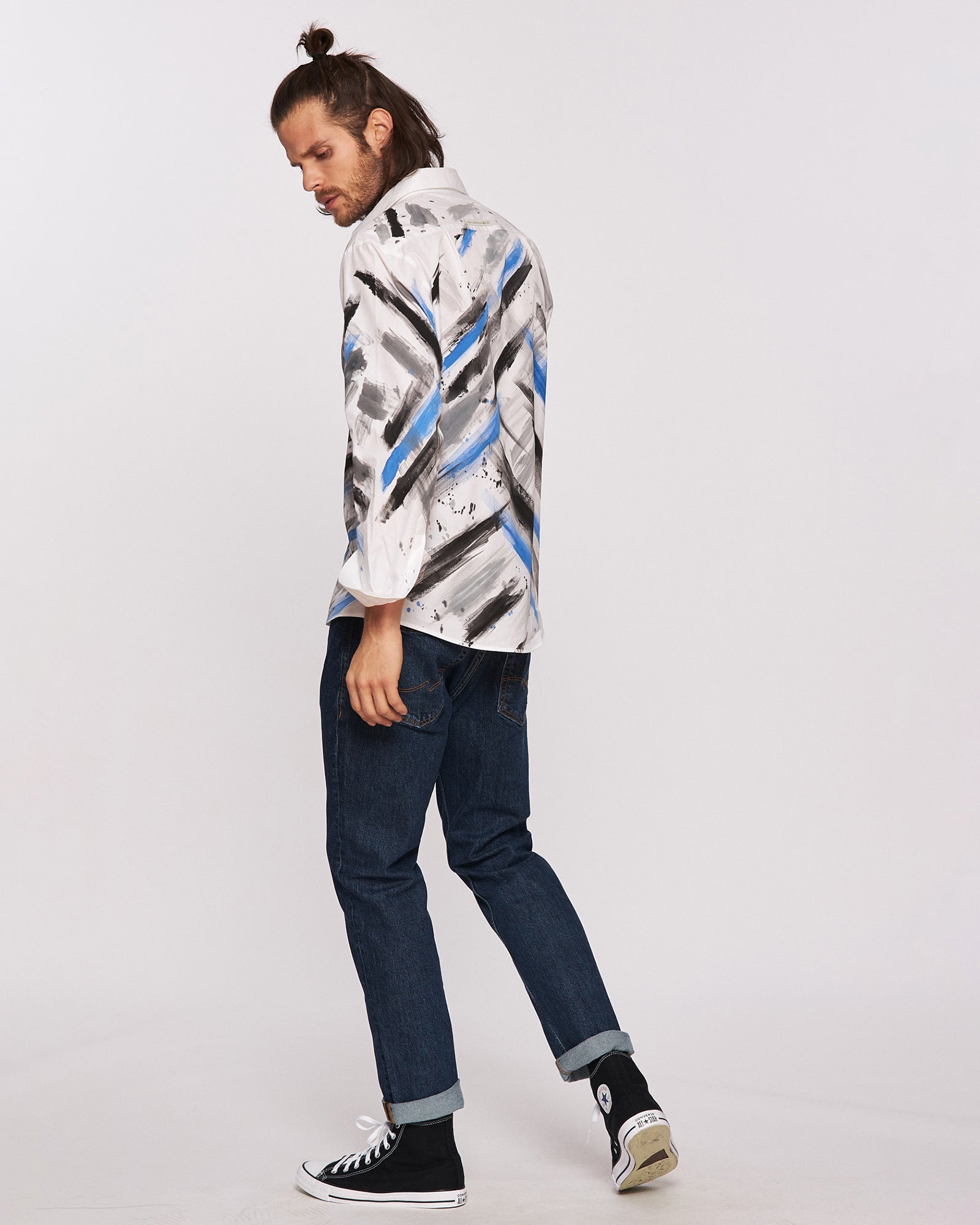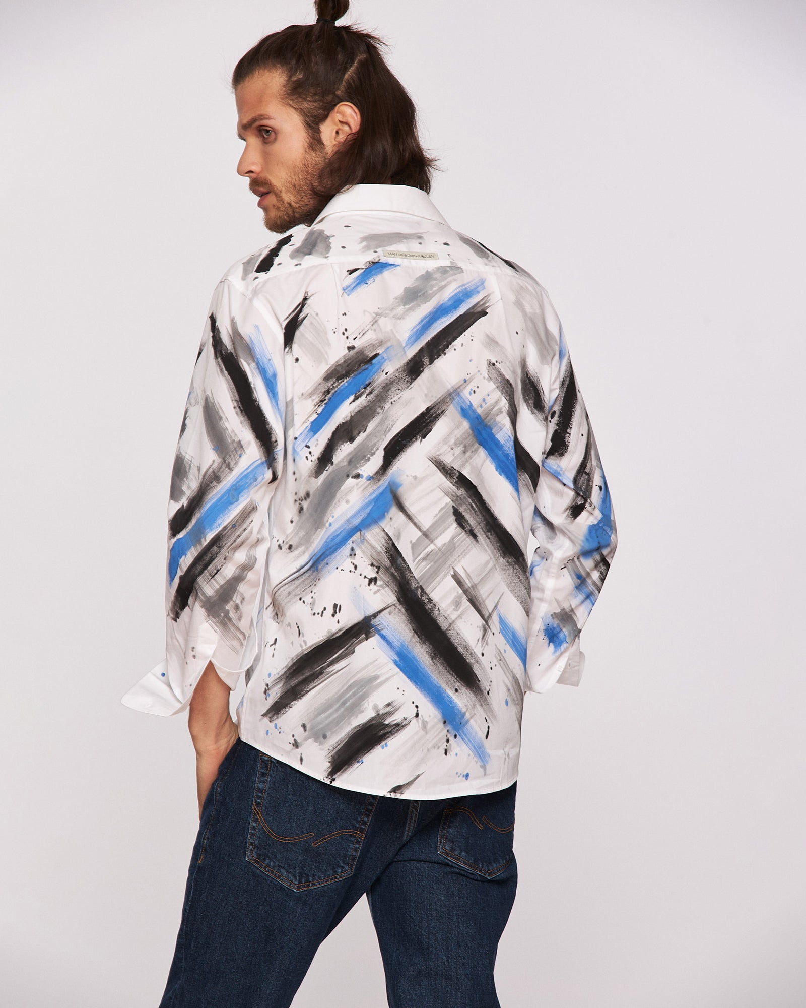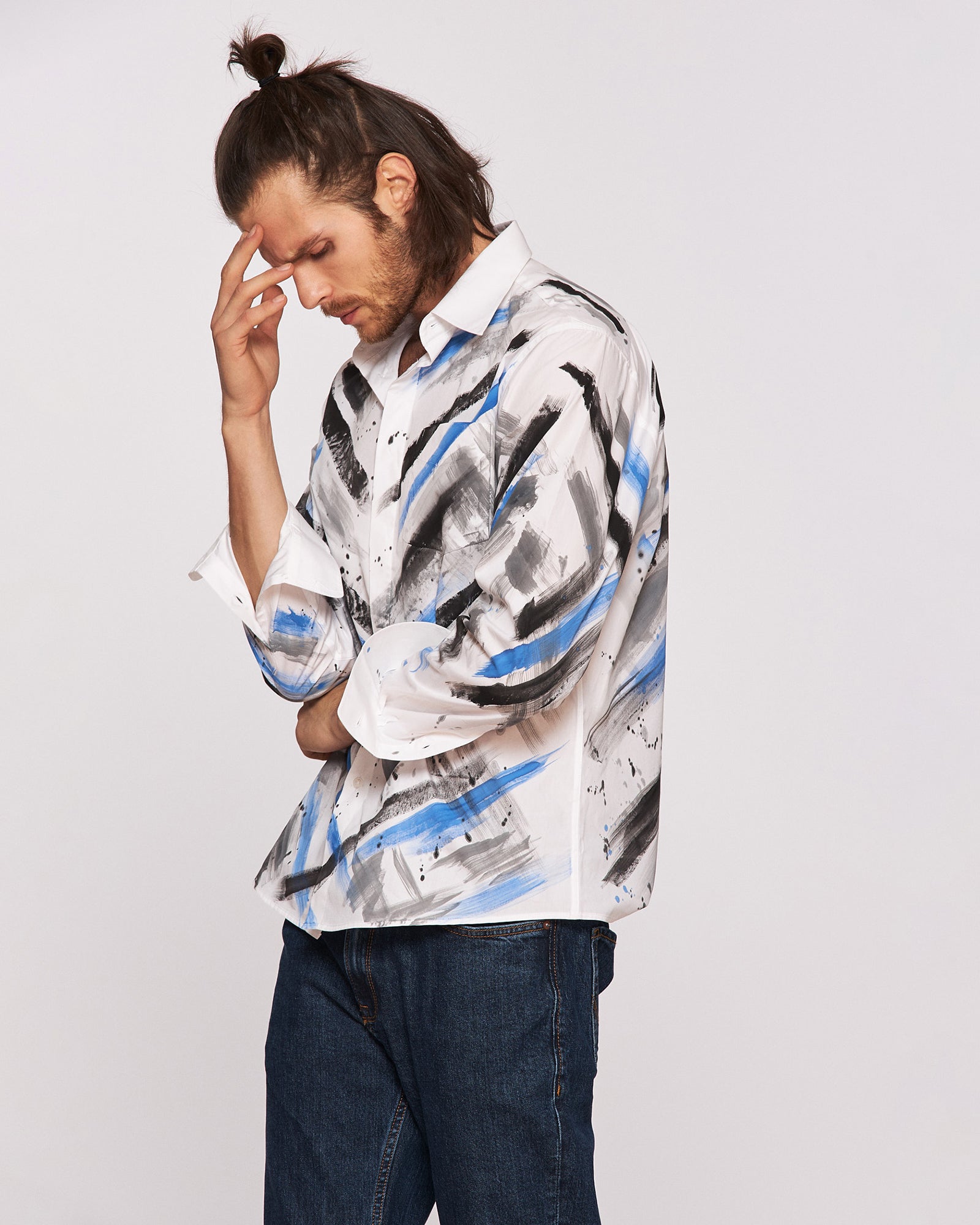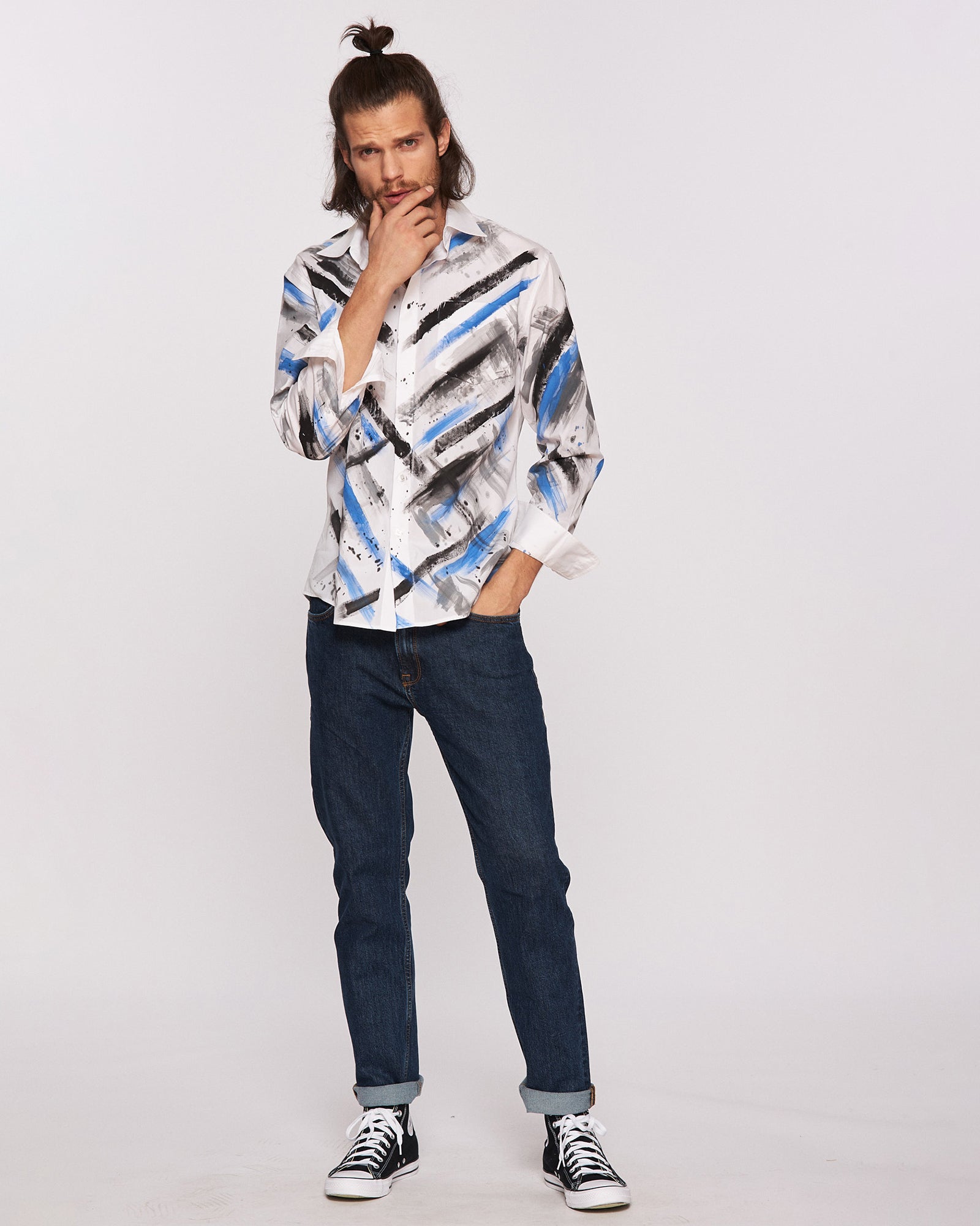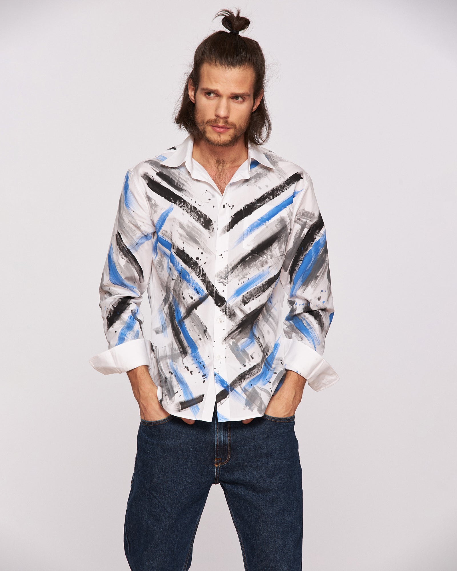 Ai un stil inedit și îți place să îl pui în valoare la fiecare ținută? Optează pentru această cămașă cu aspect de pictură nedefinită care va avea un impact deosebit asupra look-ului tău și îi va da un plus de personalitate. Poart-o cu atitudine la următoarea petrecere și fii un model pentru oamenii din jurul tău.
